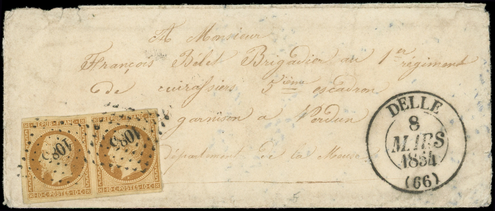 bistre-jaune, PAIRE obl. PC 1085 s. Env., càd T13 DELLE 8/3/54, TB (Image)