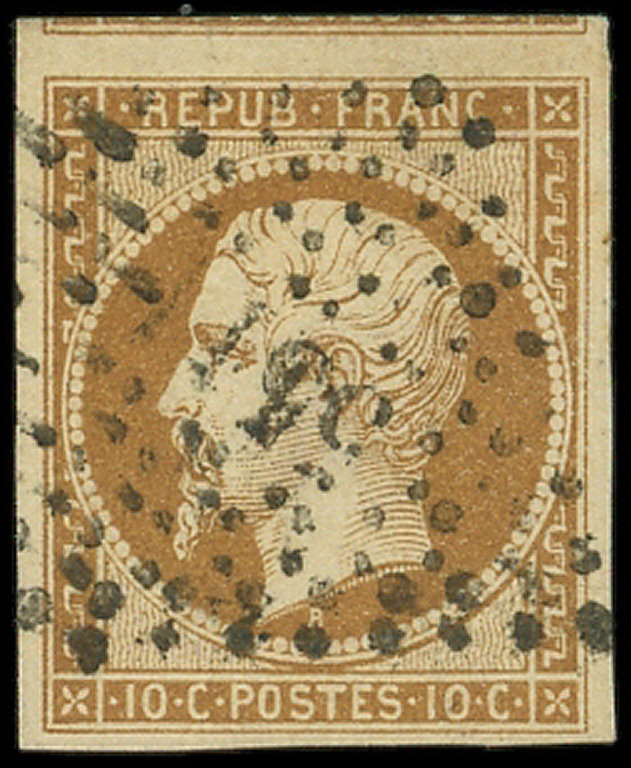bistre-jaune, obl. ROULETTE de GROS POINTS, frappe légère, TTB (Image)