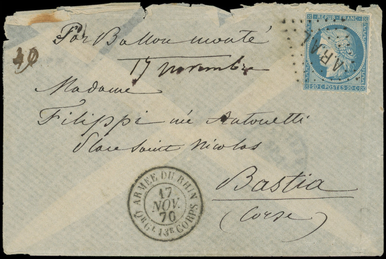 A.R.A.L. s. Env., càd ARMEE DU RHIN Qr Gal 13e CORPS 17/11/70, frappes Superbes, arr. BASTIA 17/11, combinaison RR et TB. LE Gal UHRICH (Image) (Image2)