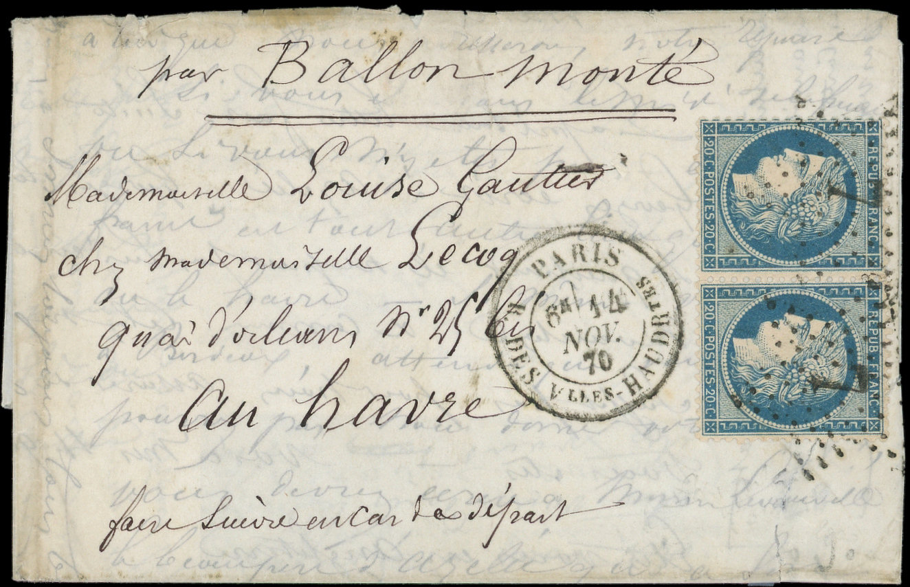 Etoile 7 s. LAC, càd R. des Vlles Haudrtes 14/11/70, arr. LE HAVRE 25/11, RR DOUBLE PORT par Ballon, TB. LE Gal UHRICH (Image) (Image2)