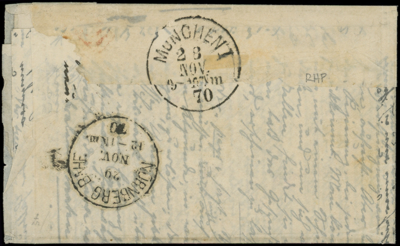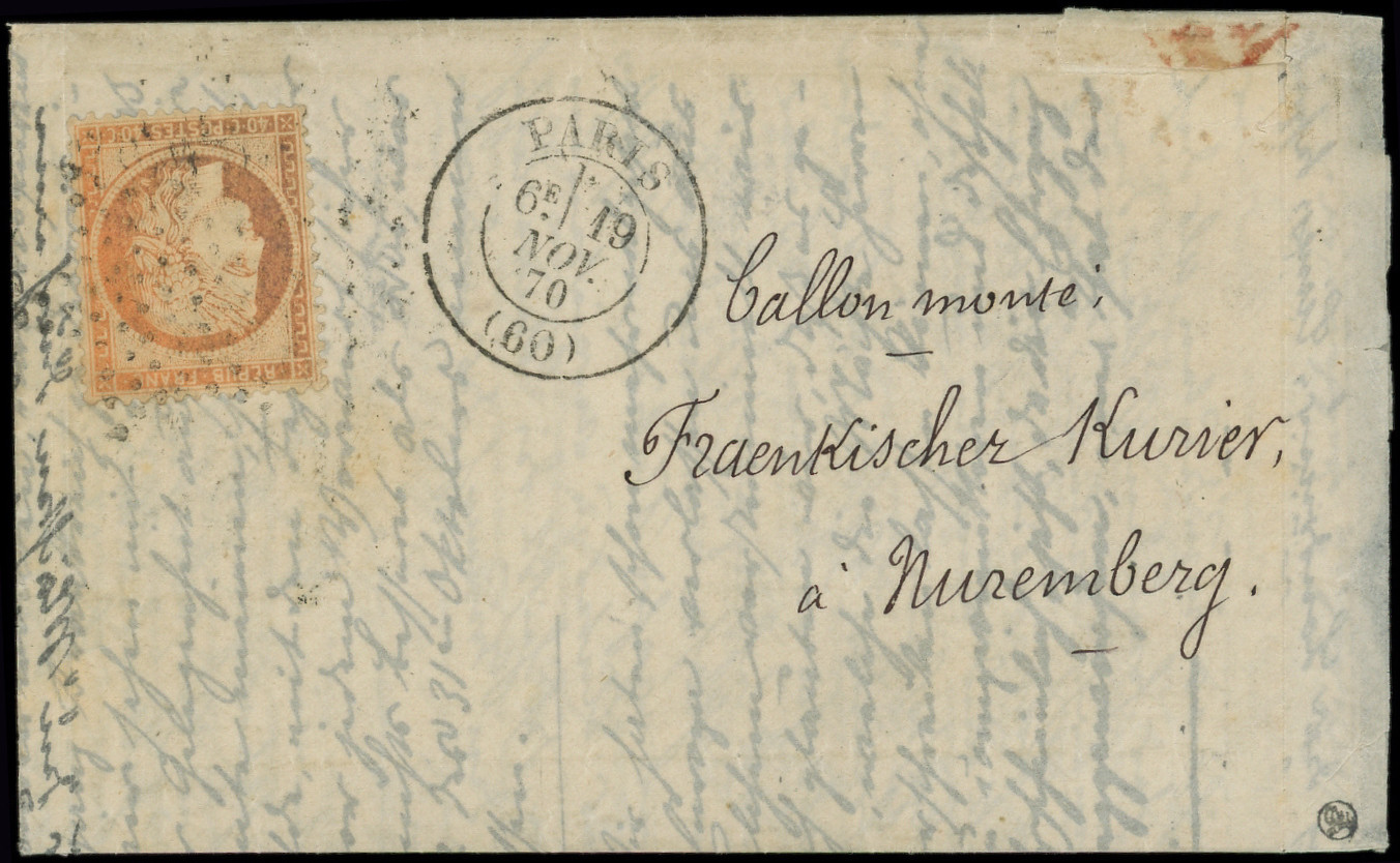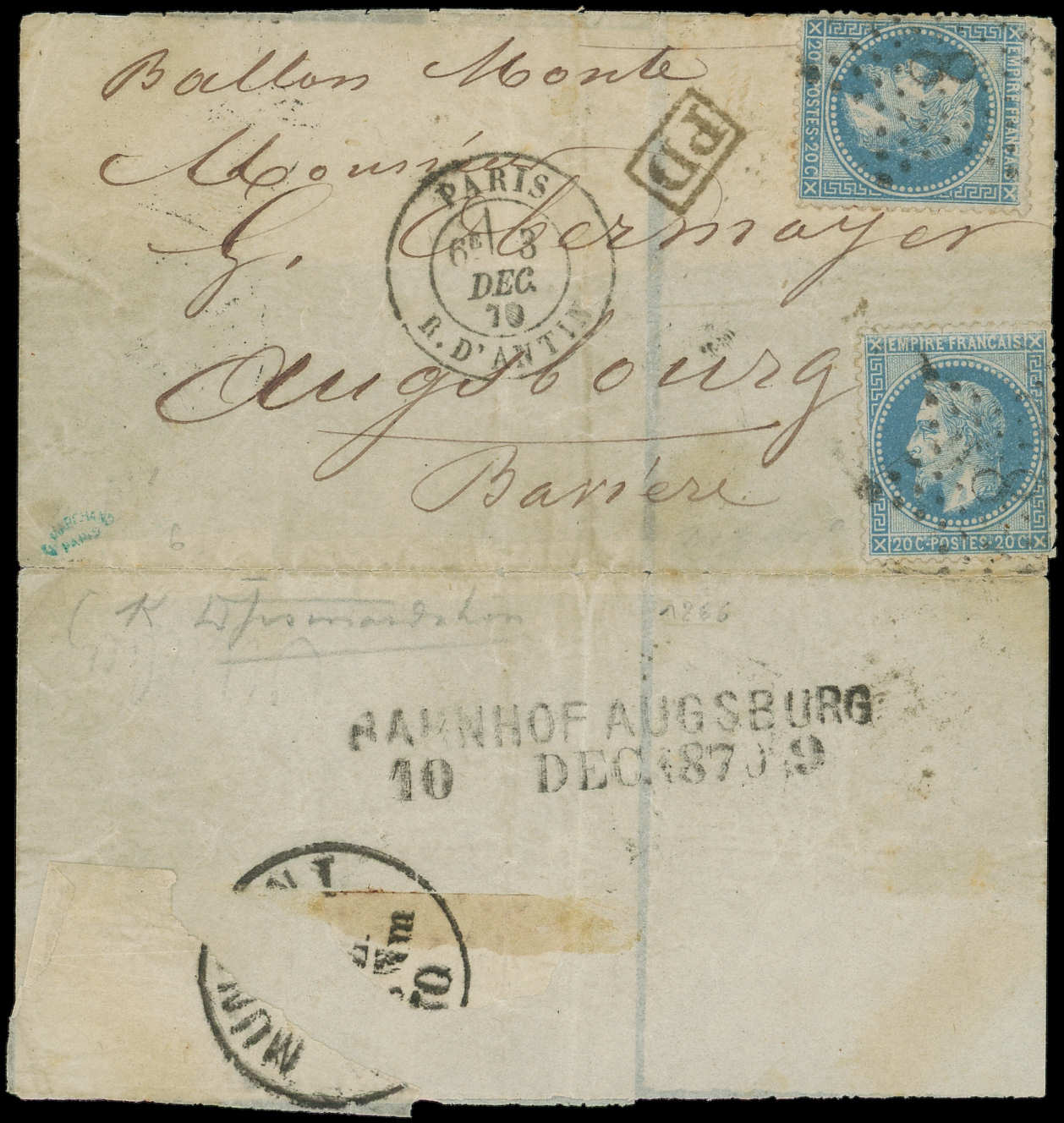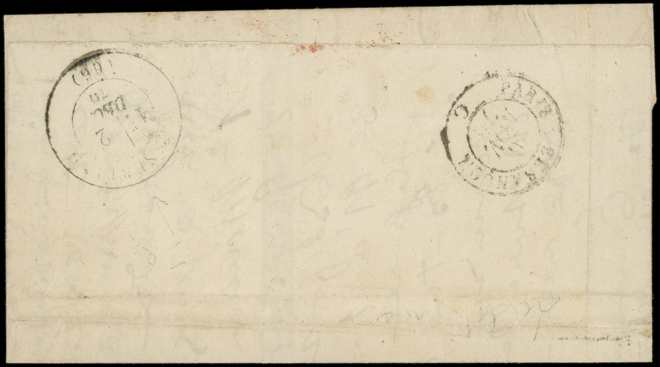 Etoile 8 s. LSC, càd R. d'Antin 3/12/70, arr. AUGSBURG 10/12, RR avec arrivée en Allemagne, TB. LE FRANKLIN (Image)