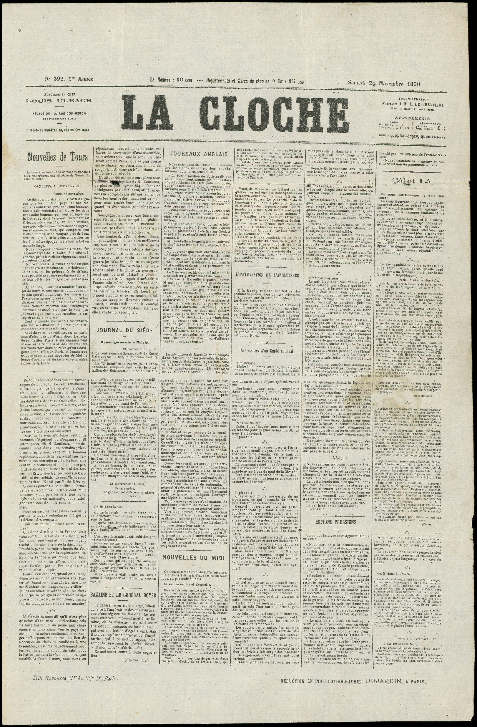 1 s. Journal LA CLOCHE, càd Pl. de la Bourse 30/11/70, arr. TOURS 2/12, TB. LE JULES FAVRE N°2 (Image) (Image2)