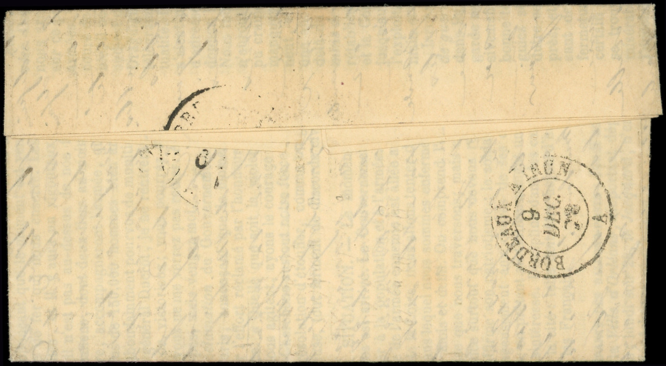 3 s. Gazette N°12, càd Pl. de la Madeleine 2/12/70, Amb. BORDEAUX A IRUN 9/12 et arr. BAGNERES de BIGORRE, TB. LE FRANKLIN (Image) (Image2)