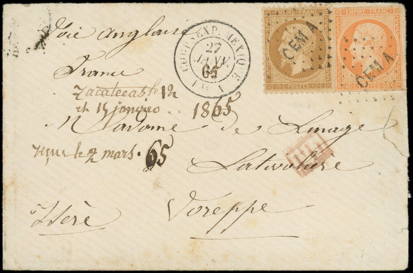 et 10c. obl. Los. CEM A s. Env., càd CORPS EXP. MEXIQUE 27/1/65, TTB (Image)
