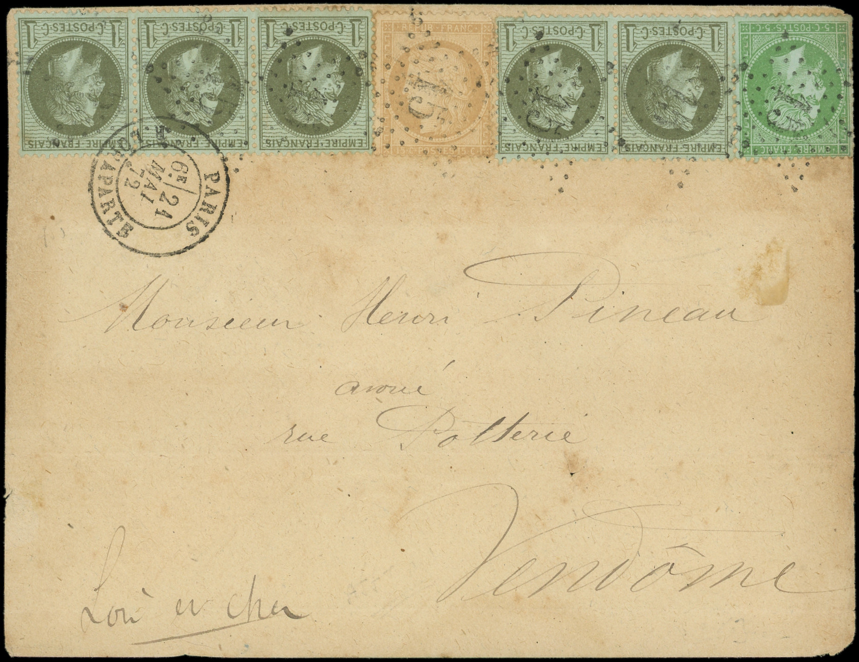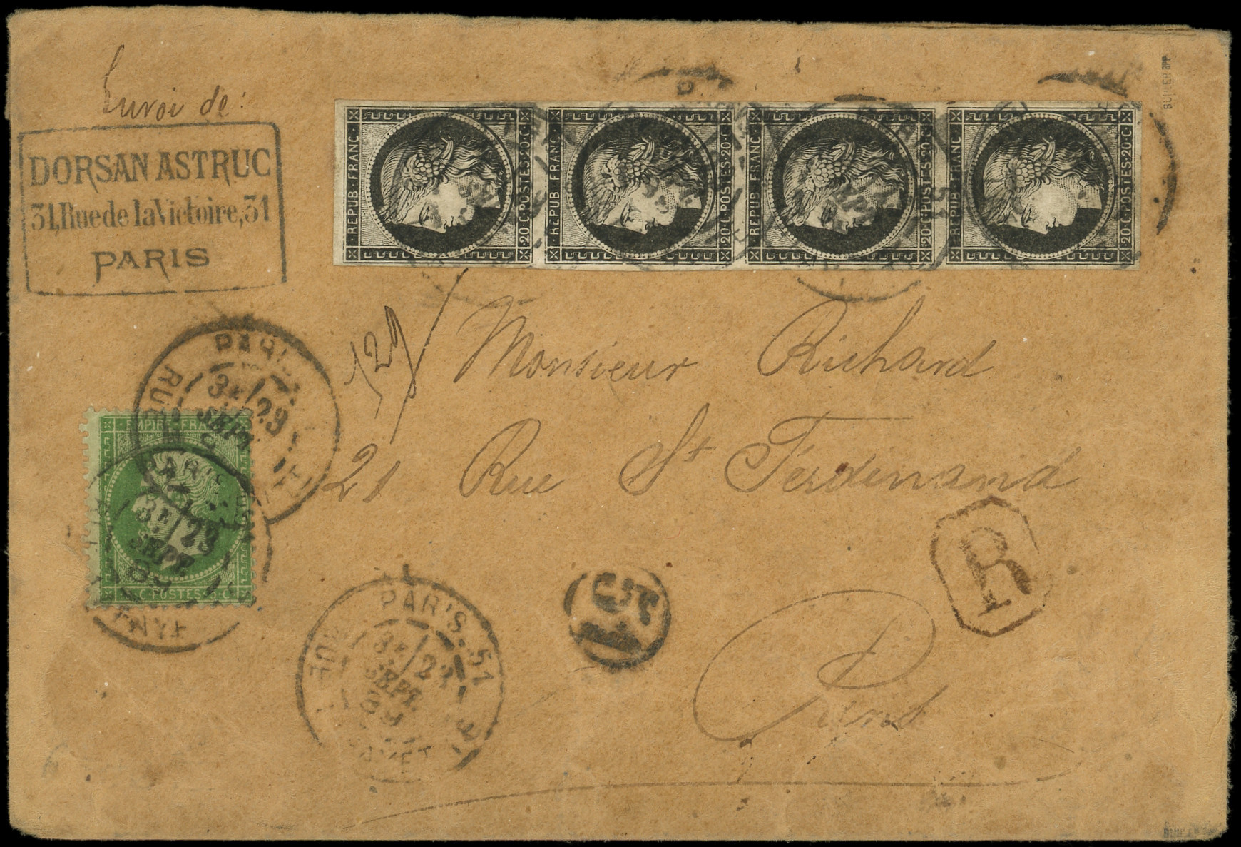 3 et PAIRE et N°59, obl. Etoile 15 et càd R. Bonaparte 21/5/72 s. Env., affrt RR, TB (Image)