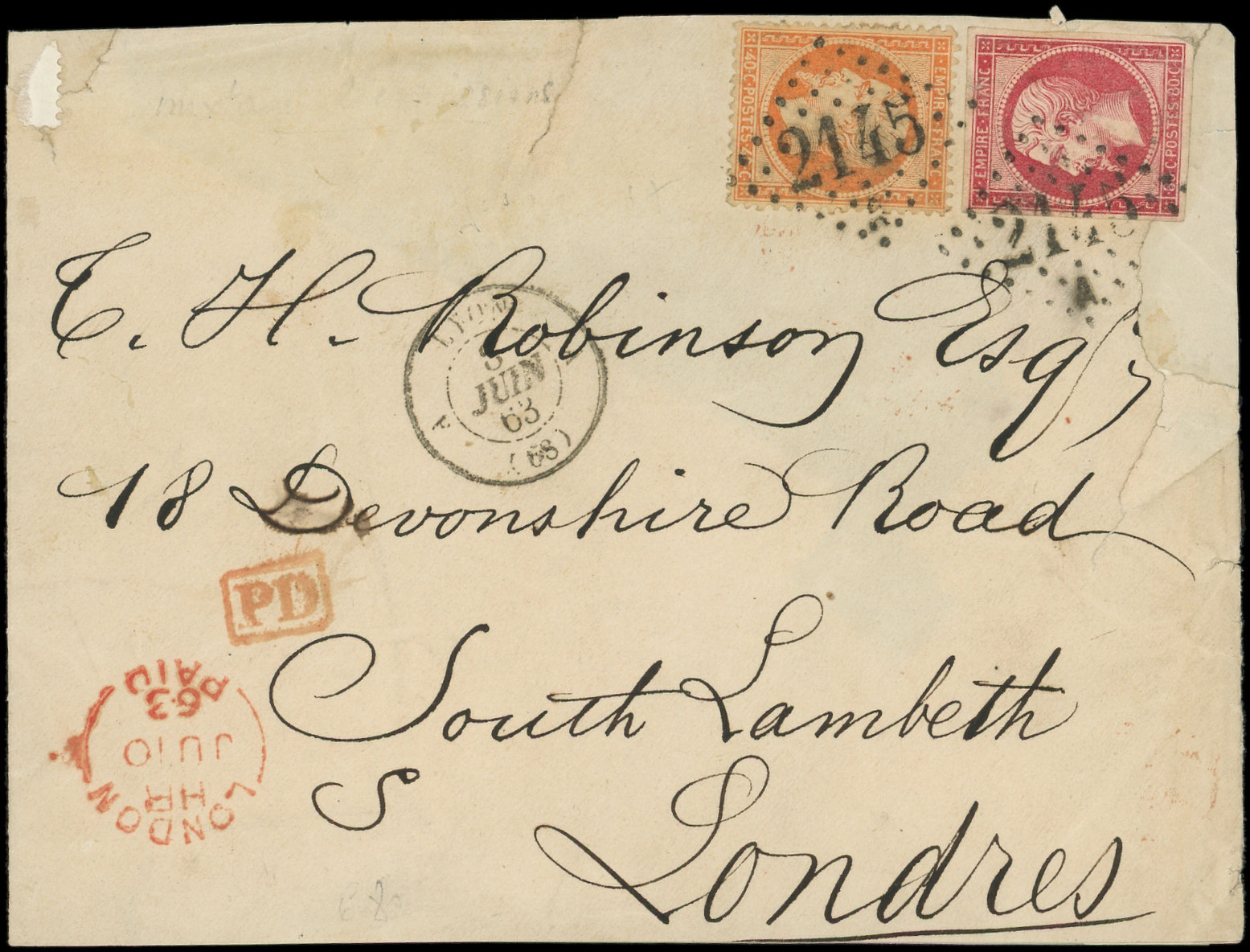 GC 2145A s. Env. verso incomplet, càd LYON 3/6/63, arr. LONDON 8/6, combinaison Rare et TB (Image)