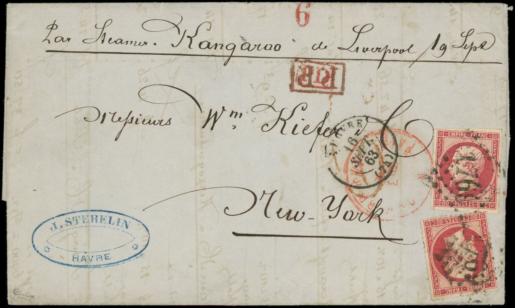GC 1769 s. LAC, càd T15 LE HAVRE 16/9/63, arr. NEW YORK par voie anglaise, RR combinaison de 80c. rose, TB (Image)