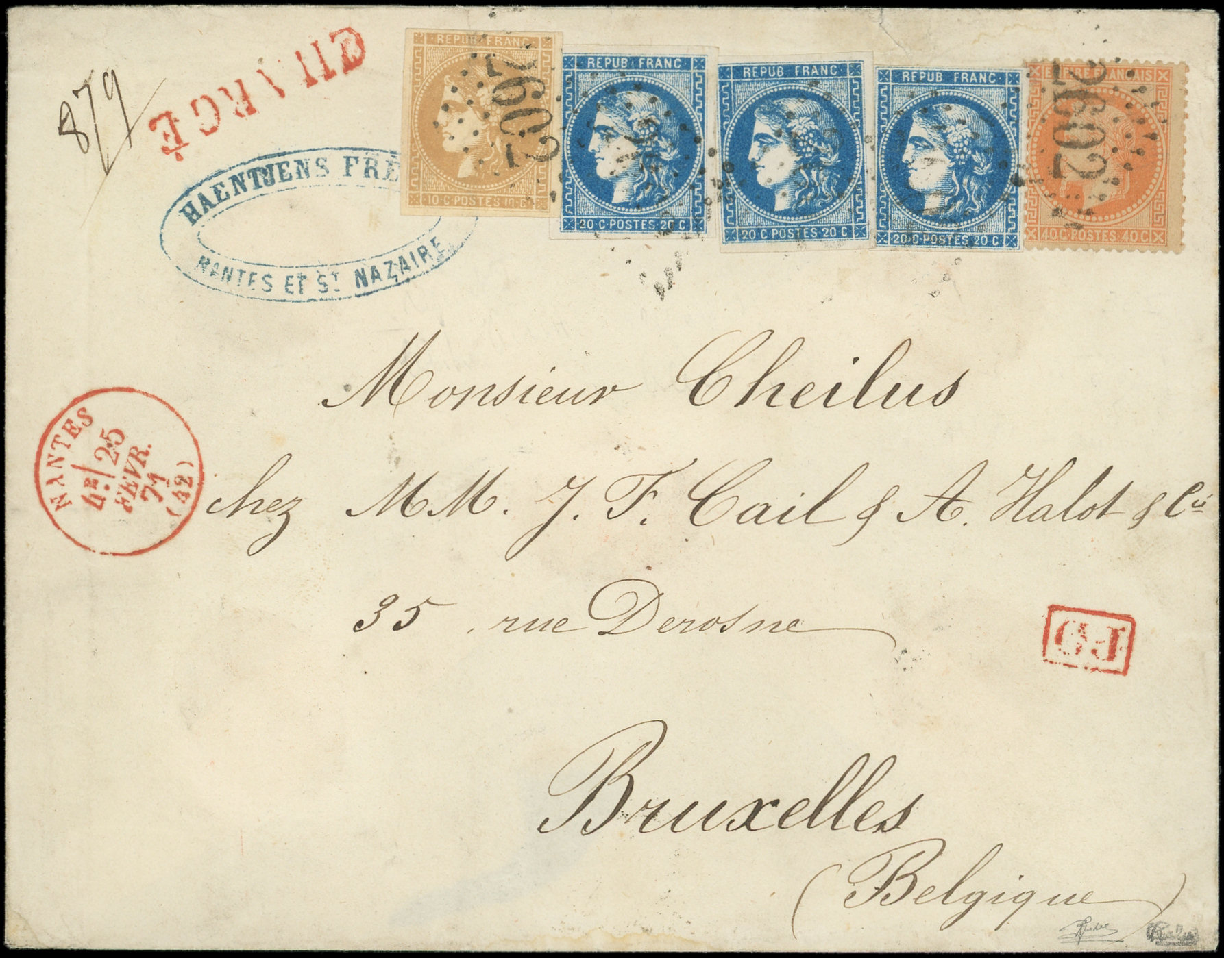 et 46B (3), obl. GC 2602 s. Env. CHARGE, càd ROUGE T16 NANTES 25/4/71, arr. BRUXELLES 5/3, affrt RR, TB (Image) (Image2)