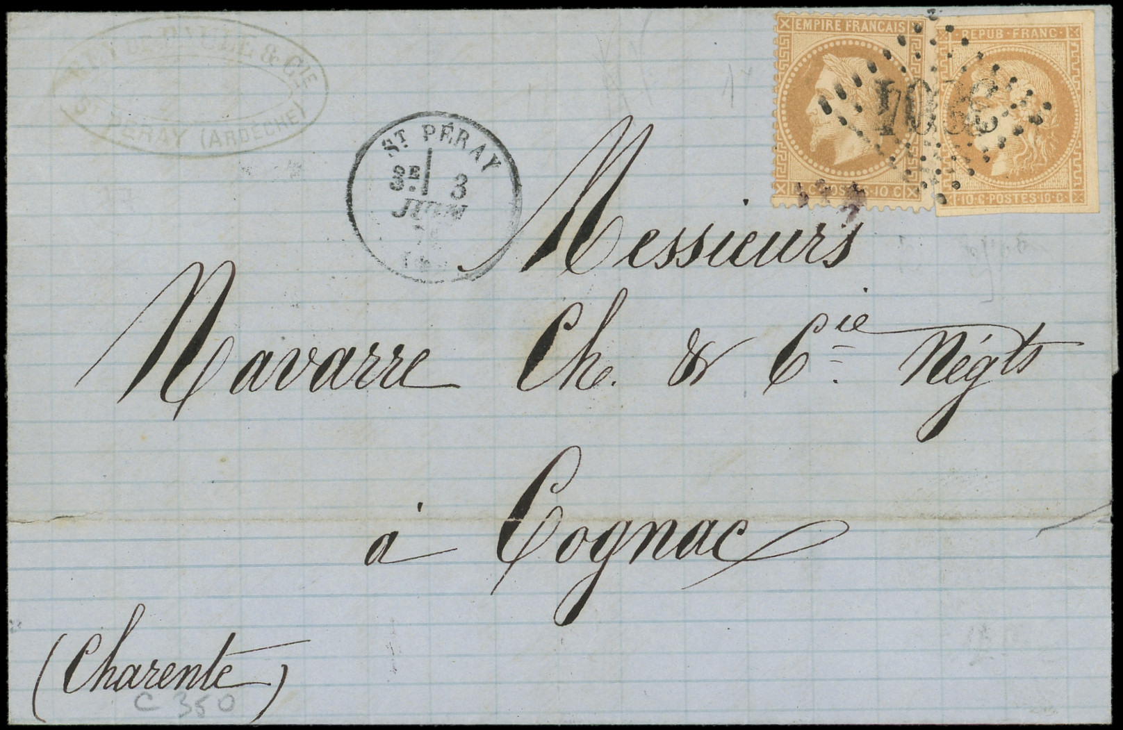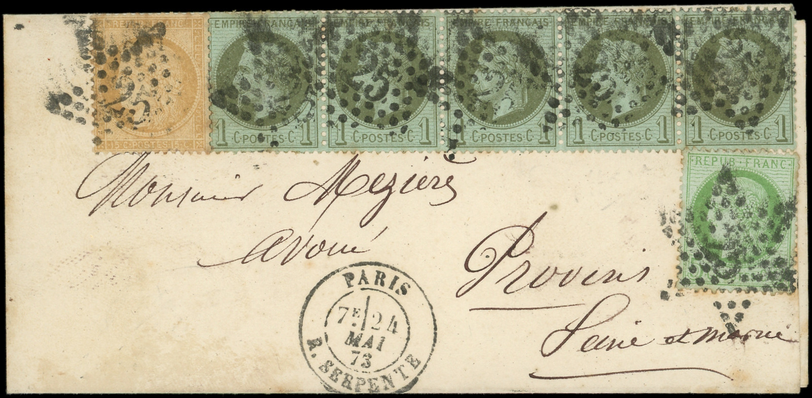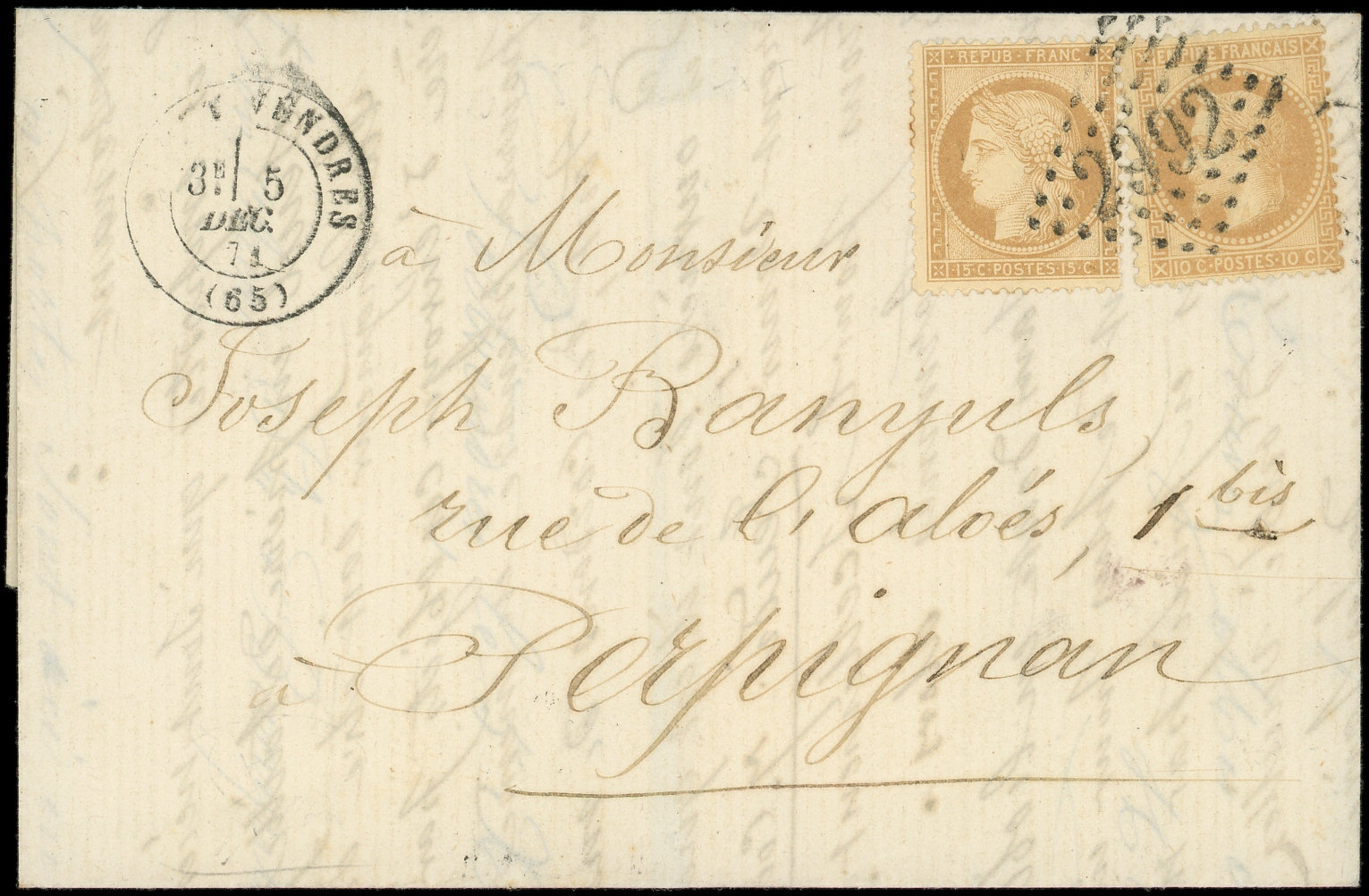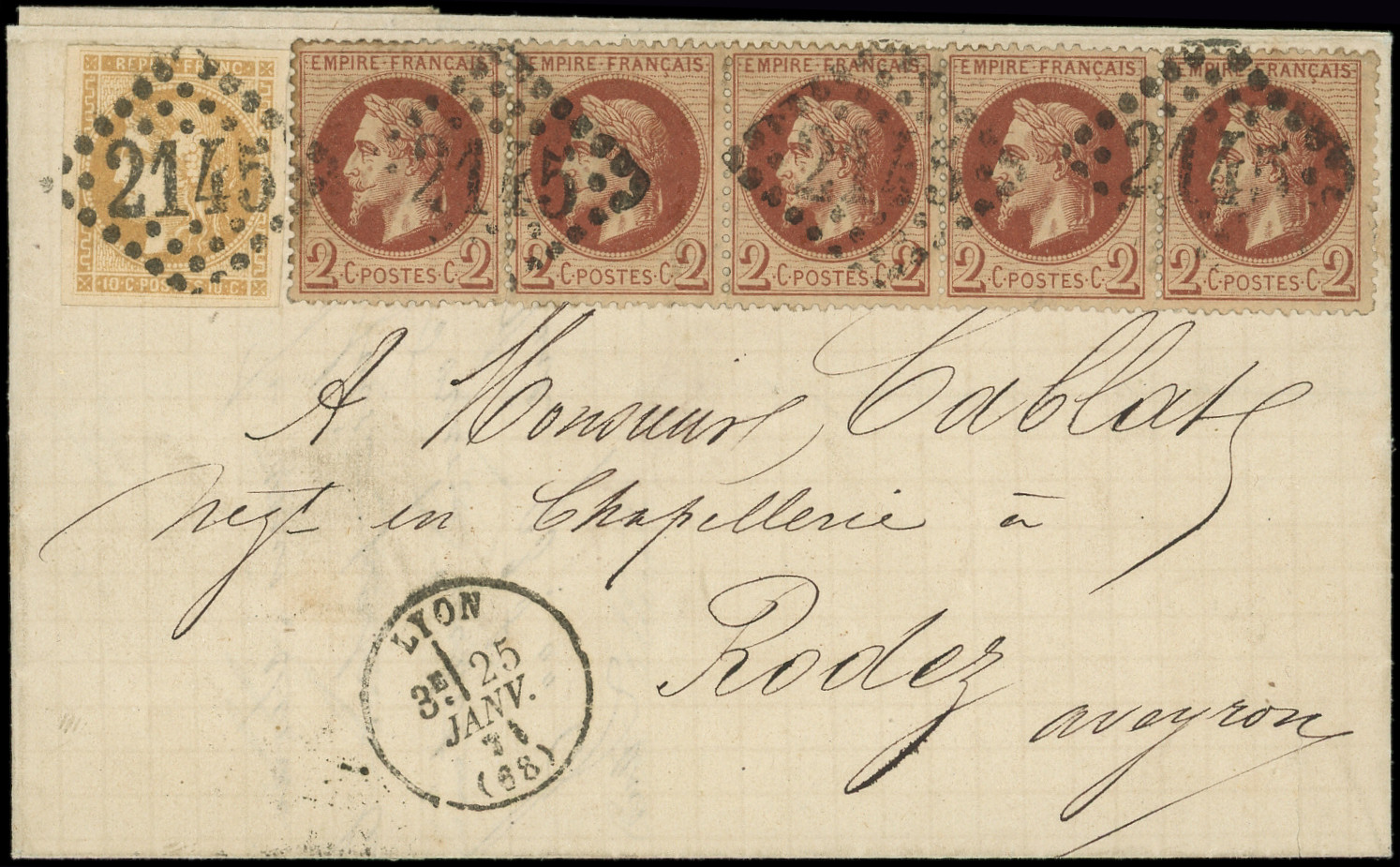 BANDE de 5 et 10c. Bordeaux R I, obl. GC 2145 s. LAC, càd T16 LYON 25/1/71, arr. Rodez 27/1, TTB (Image) (Image2)
