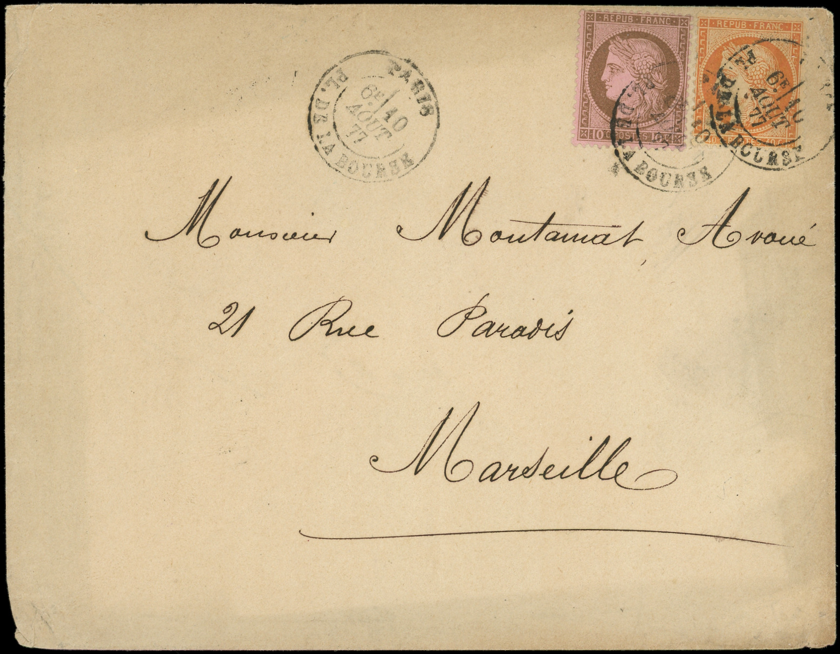 càd Pl. de la Bourse 10/8/77 s. Env., obl. Rare sur les timbres, TB (Image)