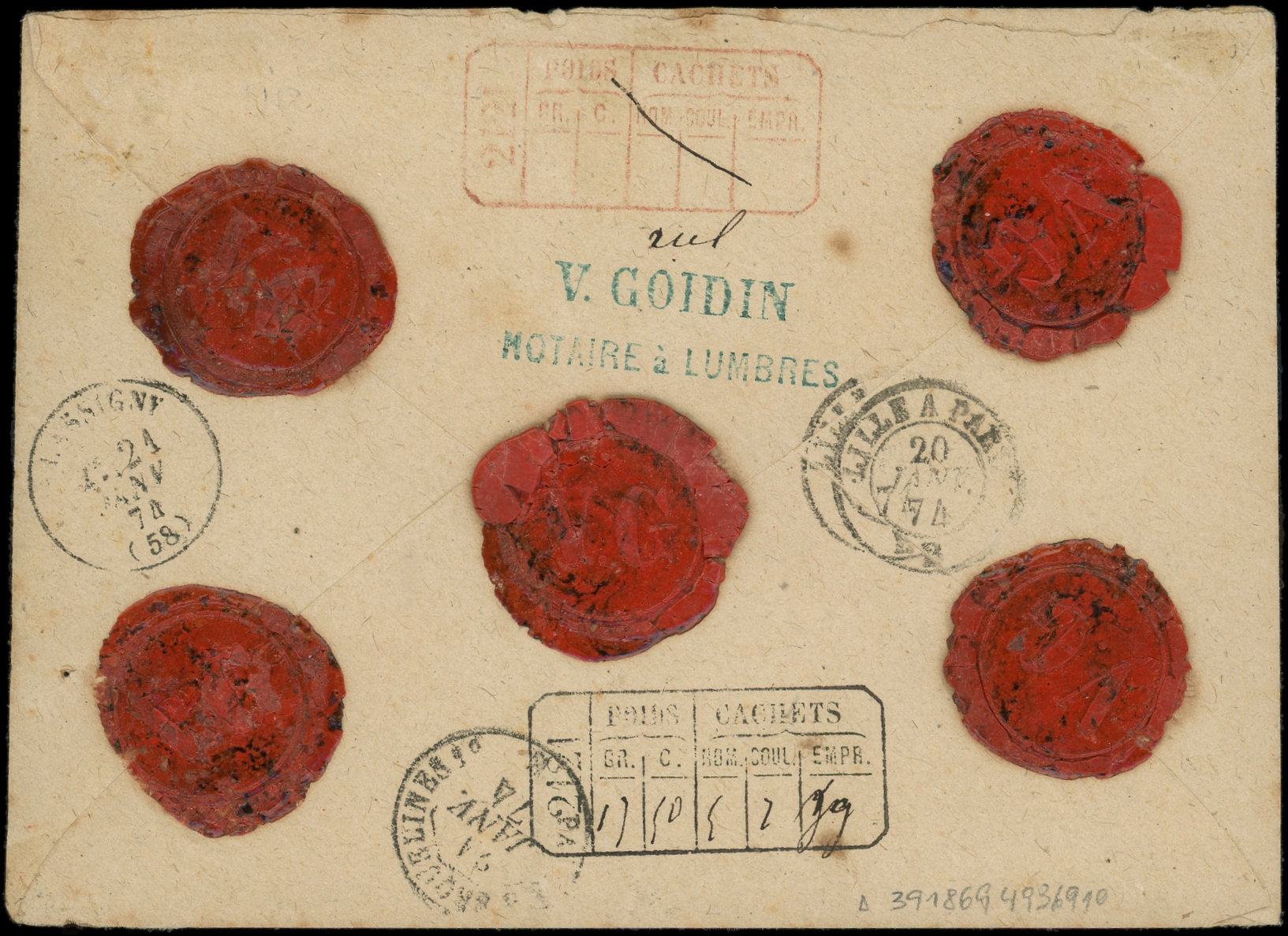 PAIRES obl GC 2121 s. Env. CHARGE, càd T16 LUMBRES 20/1/74, TRICOLORE TB (Image)