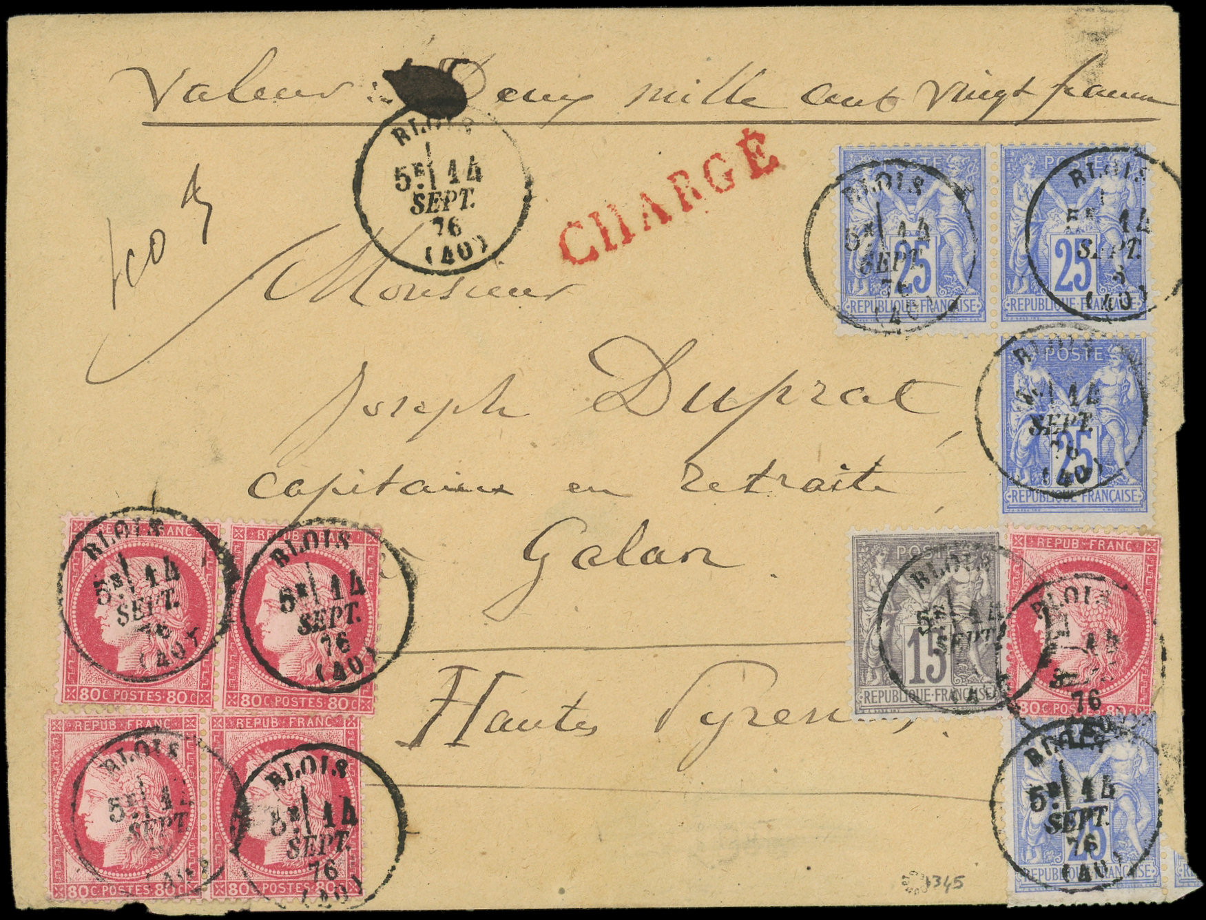 unité), N°66, 68 et 78 (3) obl. càd T16 BLOIS 14/9/76 sur Env. CHARGE, TB (Image)