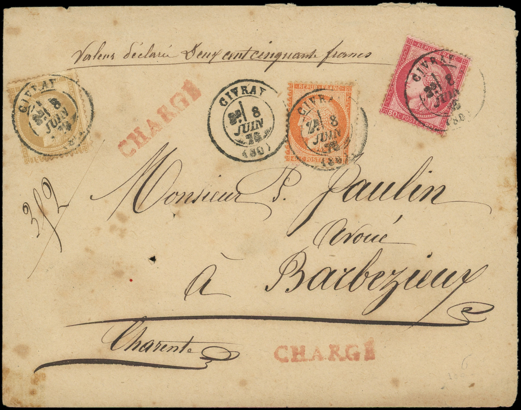 obl. càd T17 CIVRAY 8/6/76 s. Env. CHARGE, TTB (Image) (Image2)