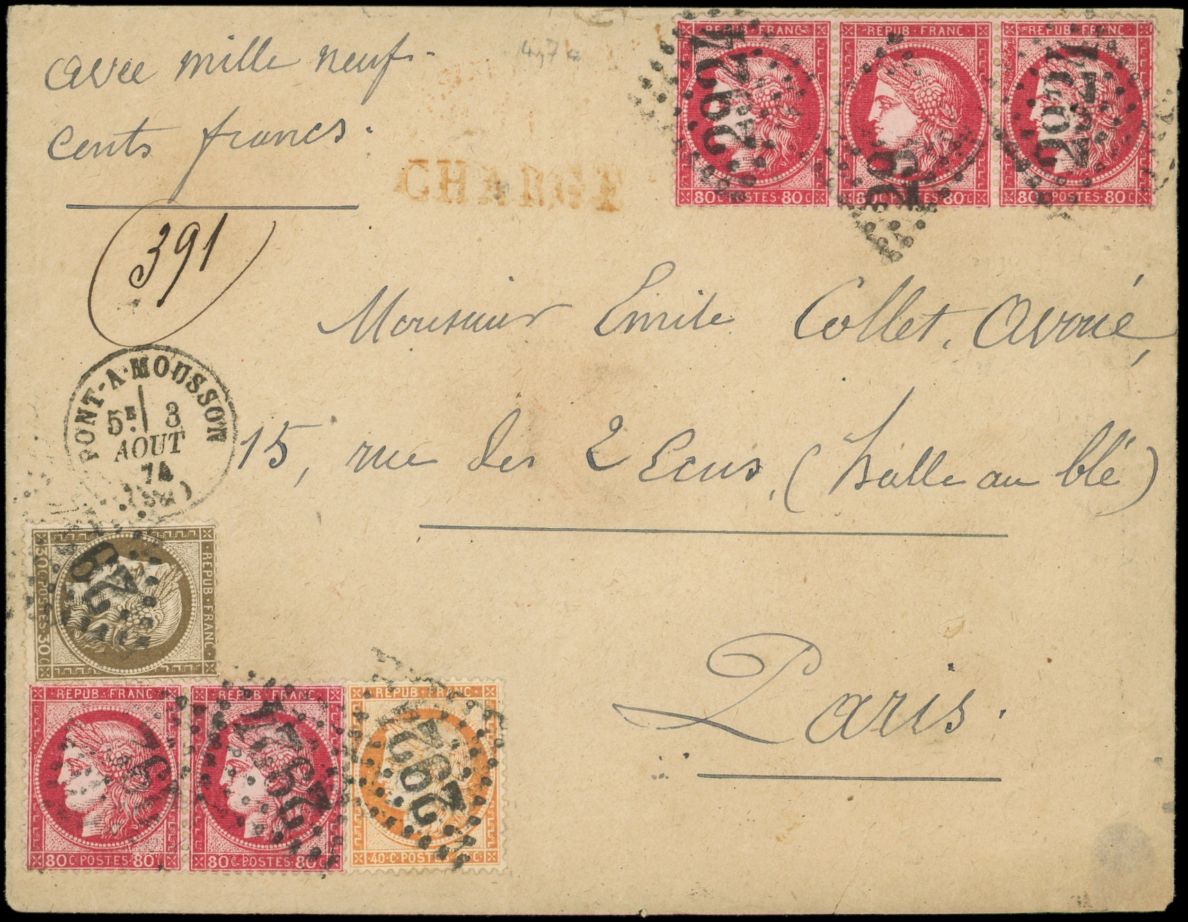 variété case 144 et N°55 obl. GC 5055 s. Env. CHARGE, càd PHILIPPEVILLE 8/2/76, Superbe (Image)