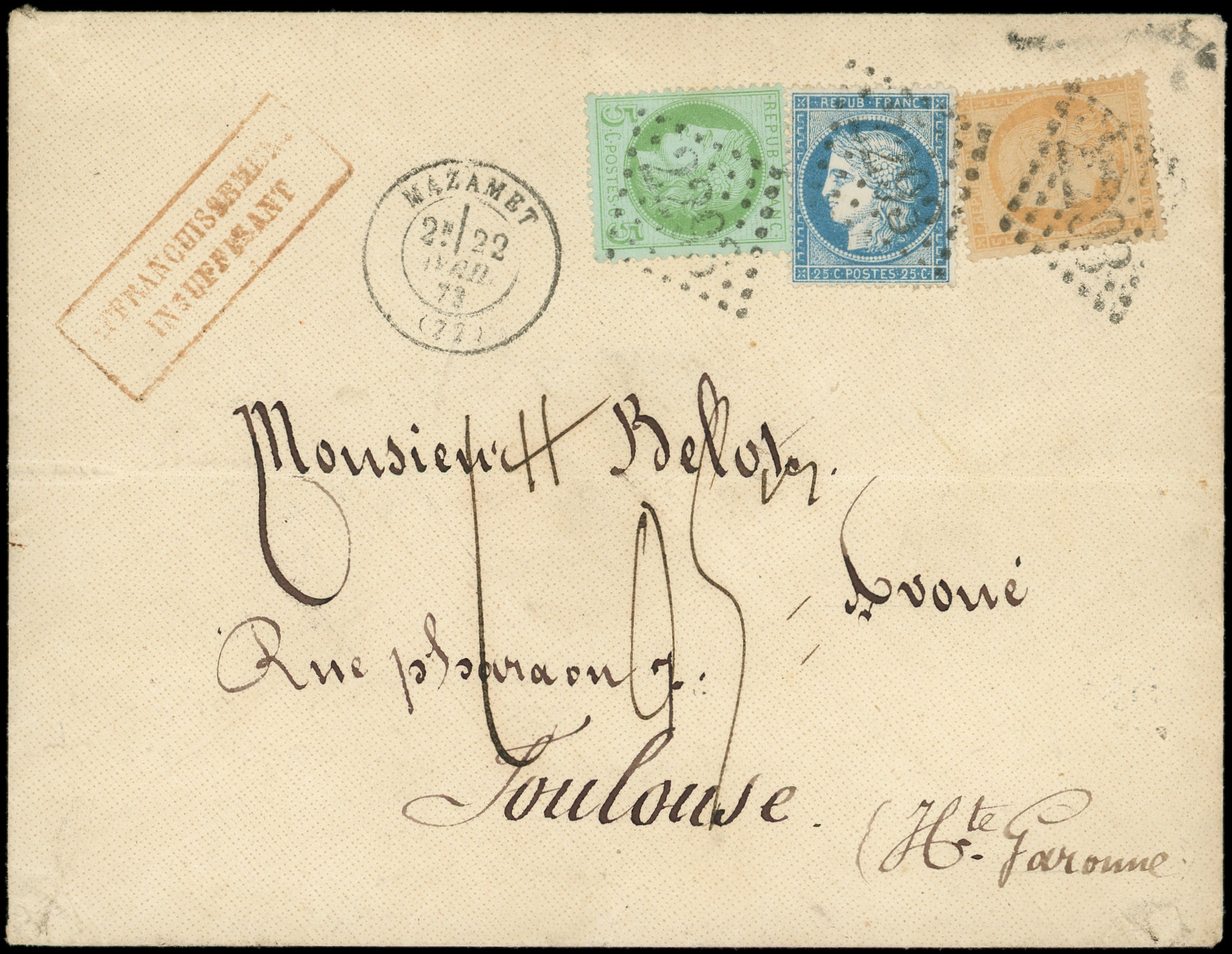 obl. GC 2293 s. Env., càd T17 MAZAMET 22/4/73, "affrt insuff." et TAXE 1,05, RR, TTB (Image)
