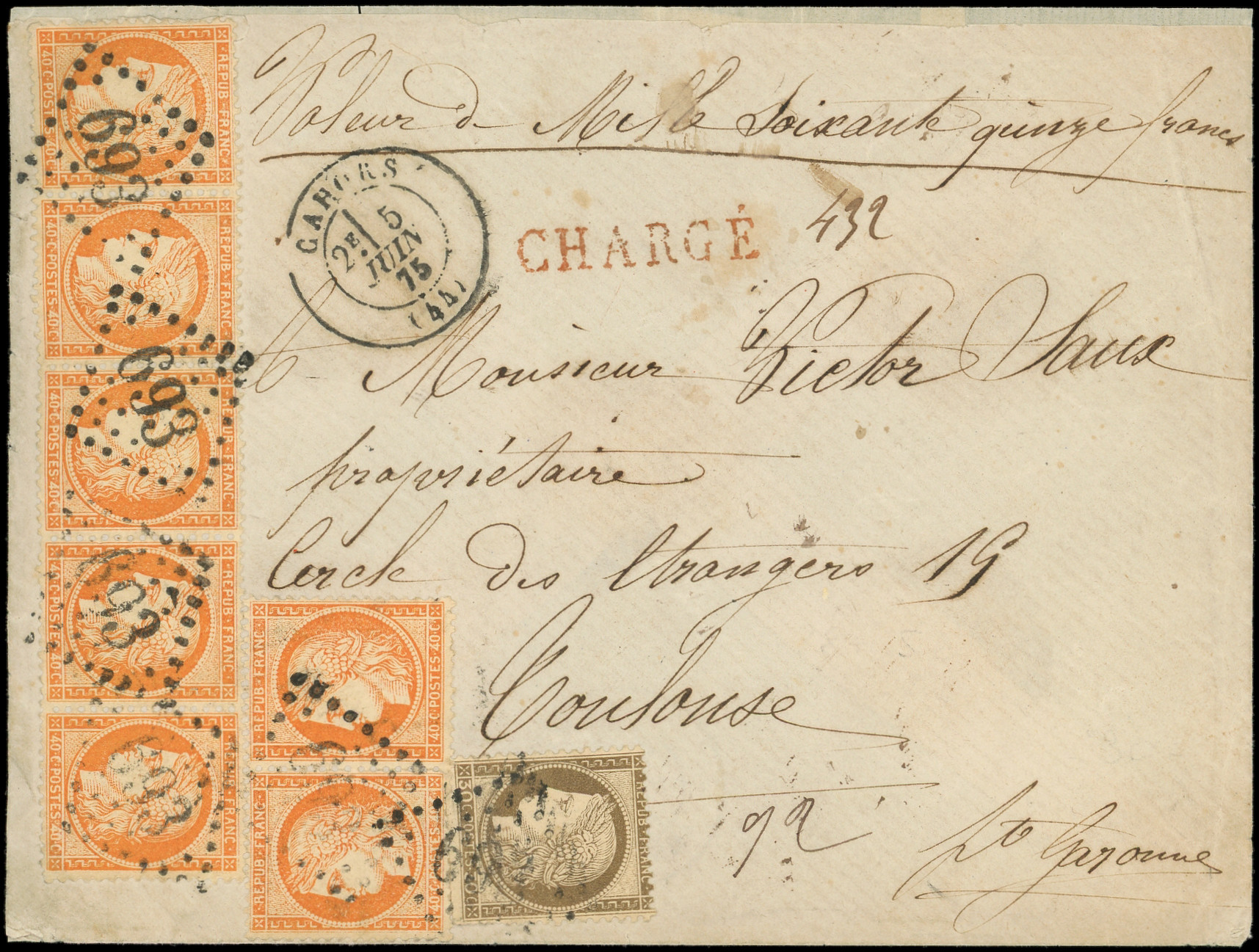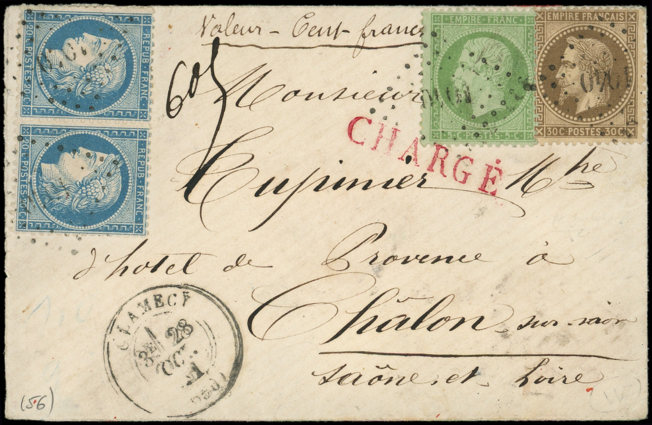 et PAIRE + N°56 obl. GC 693 s. Env. CHARGE, càd T17 CAHORS 5/6/75, affrt peu courant, TB (Image) (Image2)