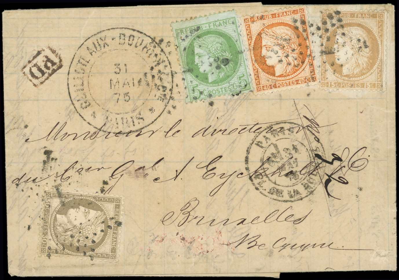 56 obl. Etoile 1 s. LAC, càd Pl. de la Bourse 31/5/75, arr. BRUXELLES, QUADRICOLORE TB (Image) (Image2)