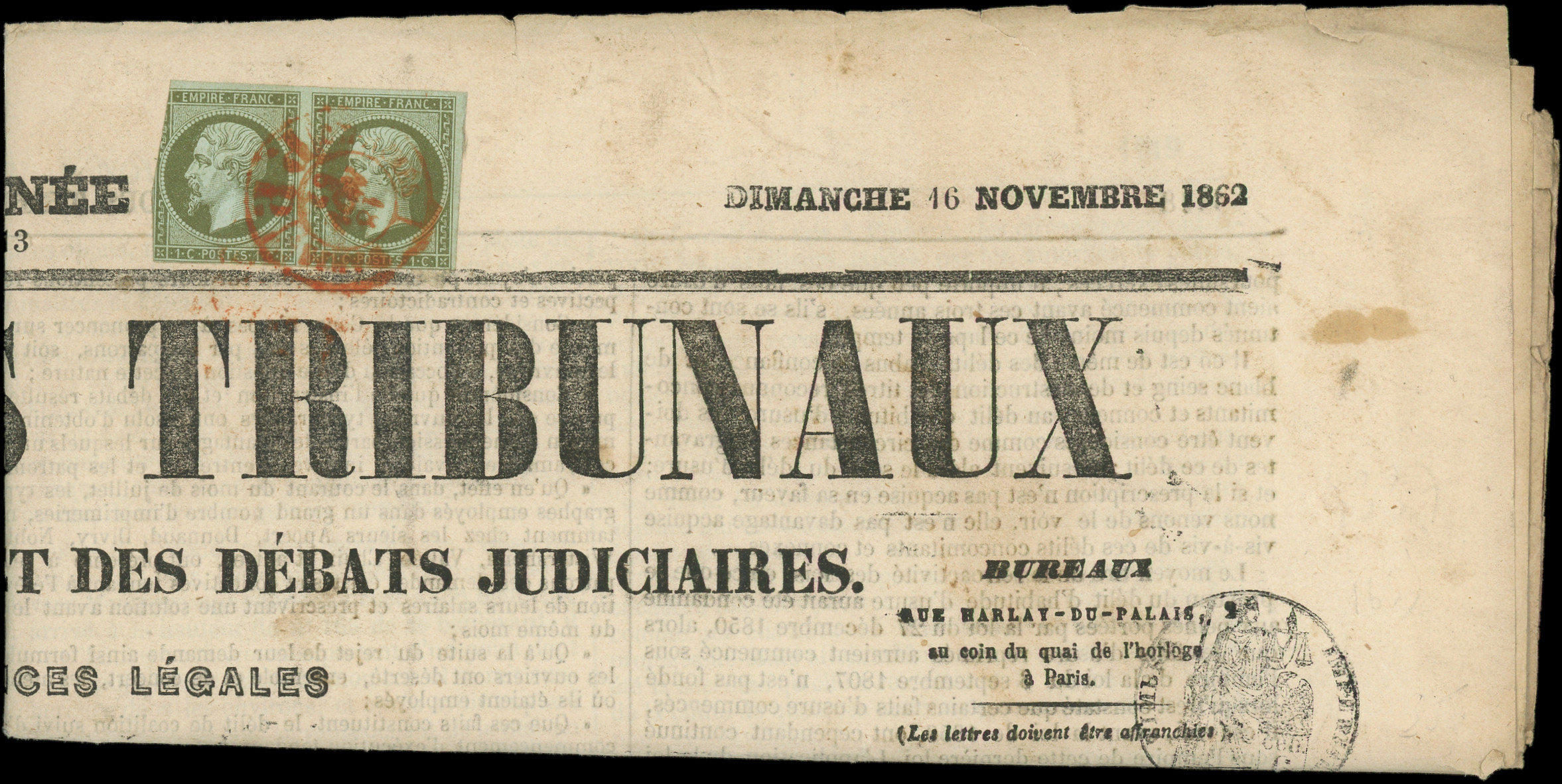 PAIRE 1 t. entamé obl. càd ROUGE des Imprimés PP s. la Gazette des Tribunaux du 16/11/62, plaisant (Image)