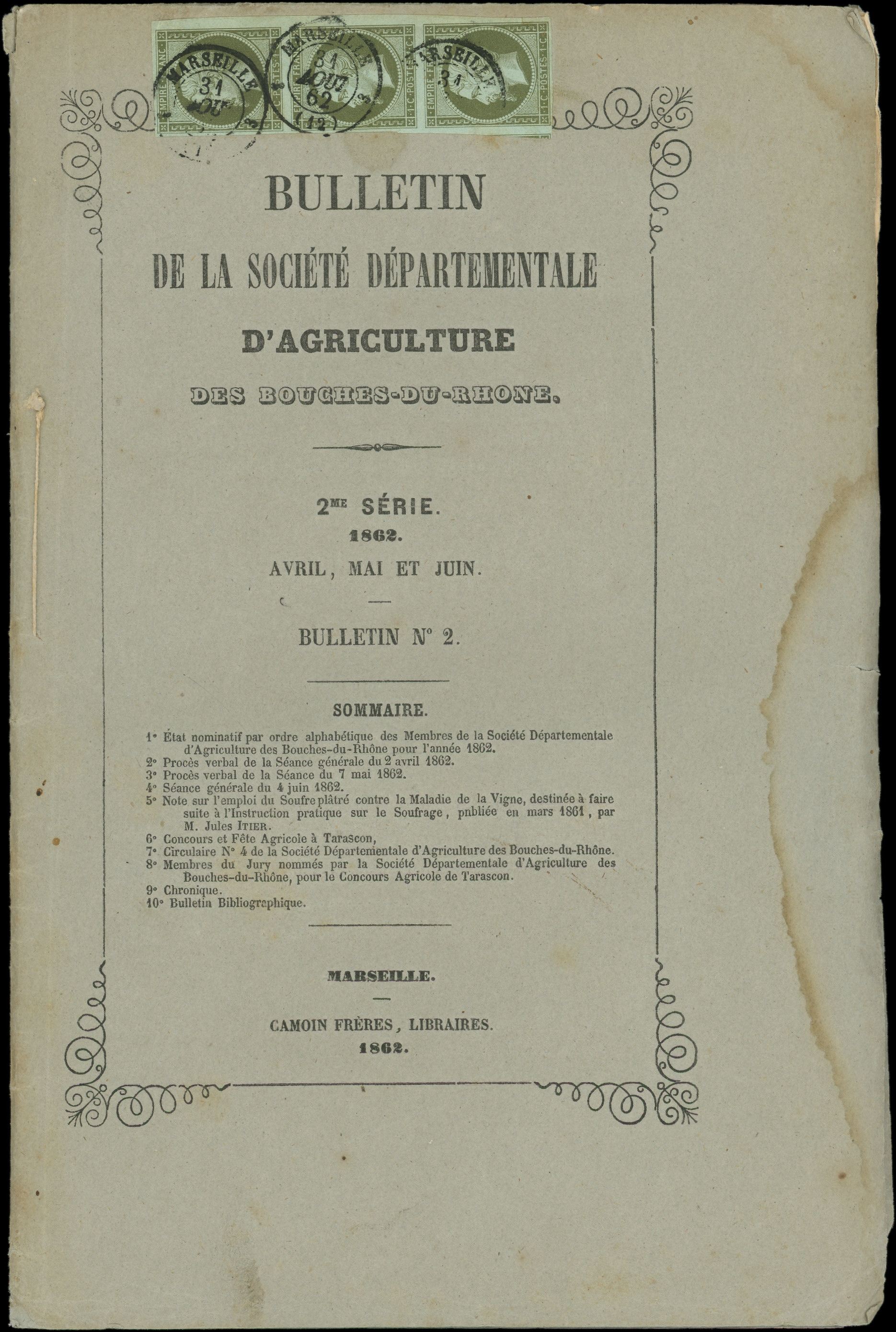 BANDE de 3 obl. càd MARSEILLE 31/8/62 s. Bulletin de la Société Départementale d'Agriculture, TB (Image)