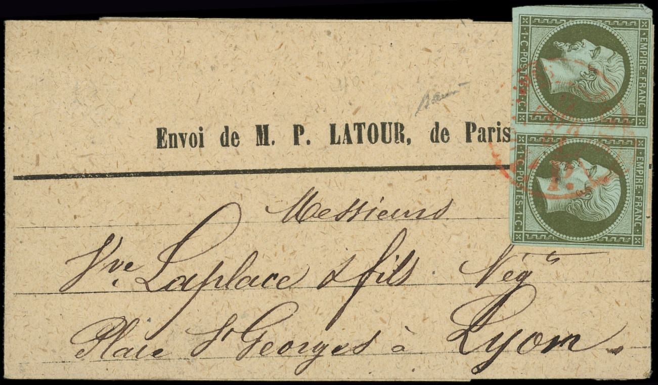 PAIRE obl. càd ROUGE des Imprimés 11/61 s. bande P. Latour Paris, RR et TB (Image)