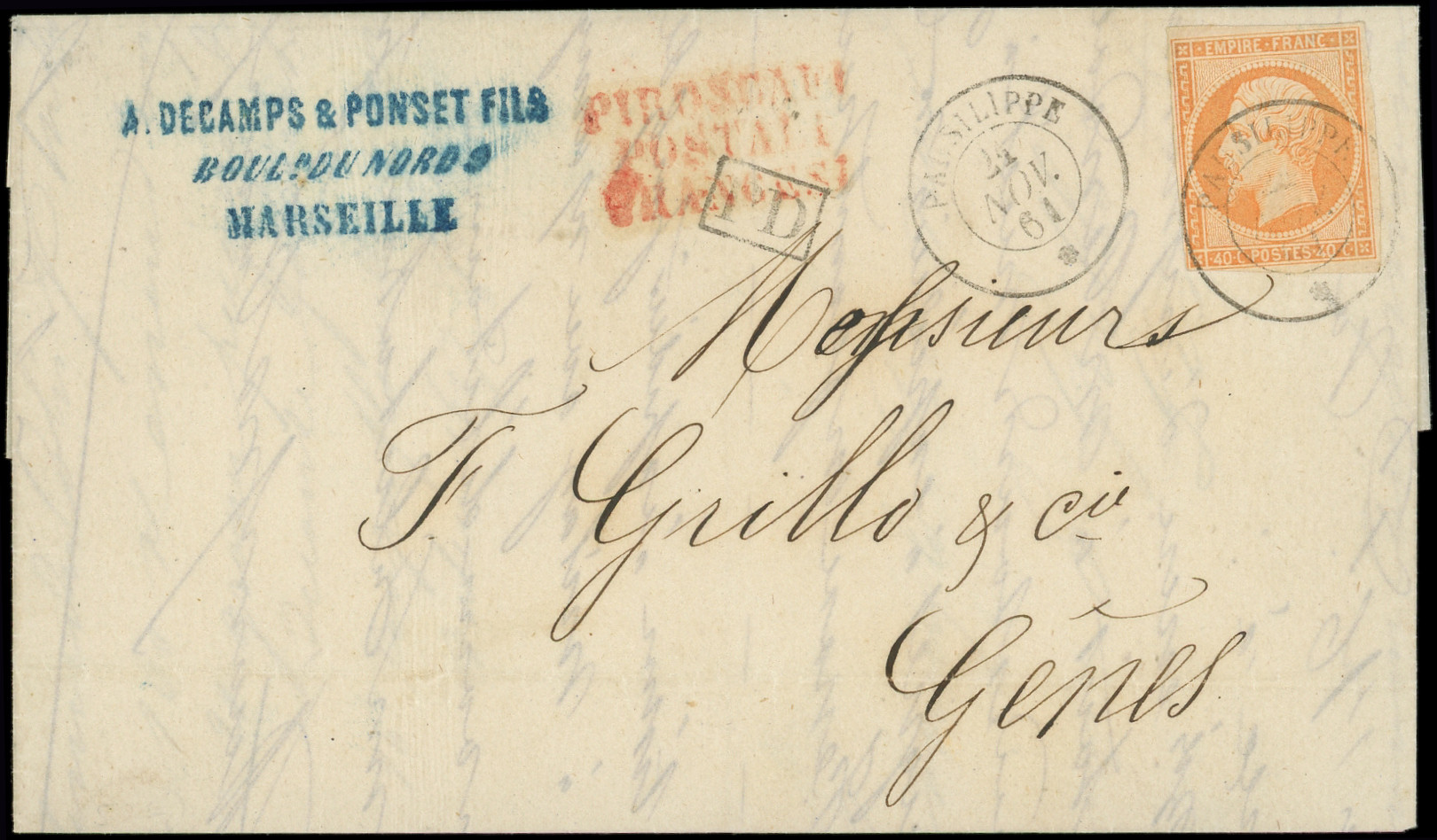 effl. en angle, obl. càd PAUSILIPPE s. LAC, arr. GENOVA 22/11/61, ind. 25, TTB (Image)