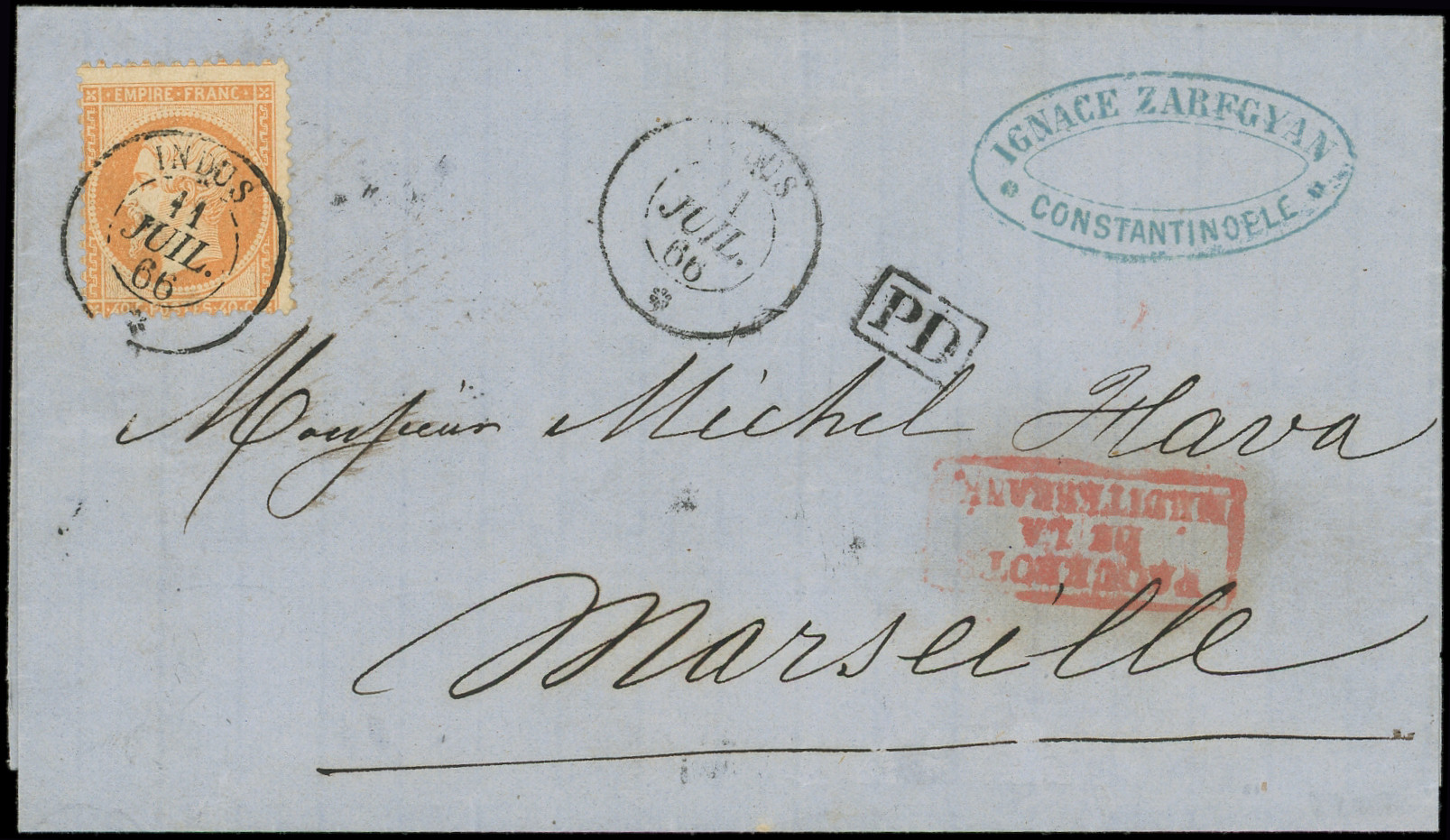 INDUS 11/7/66 répété à côté s. LSC de Constantinople à Marseille 18/7, ind. 26, TTB (Image)