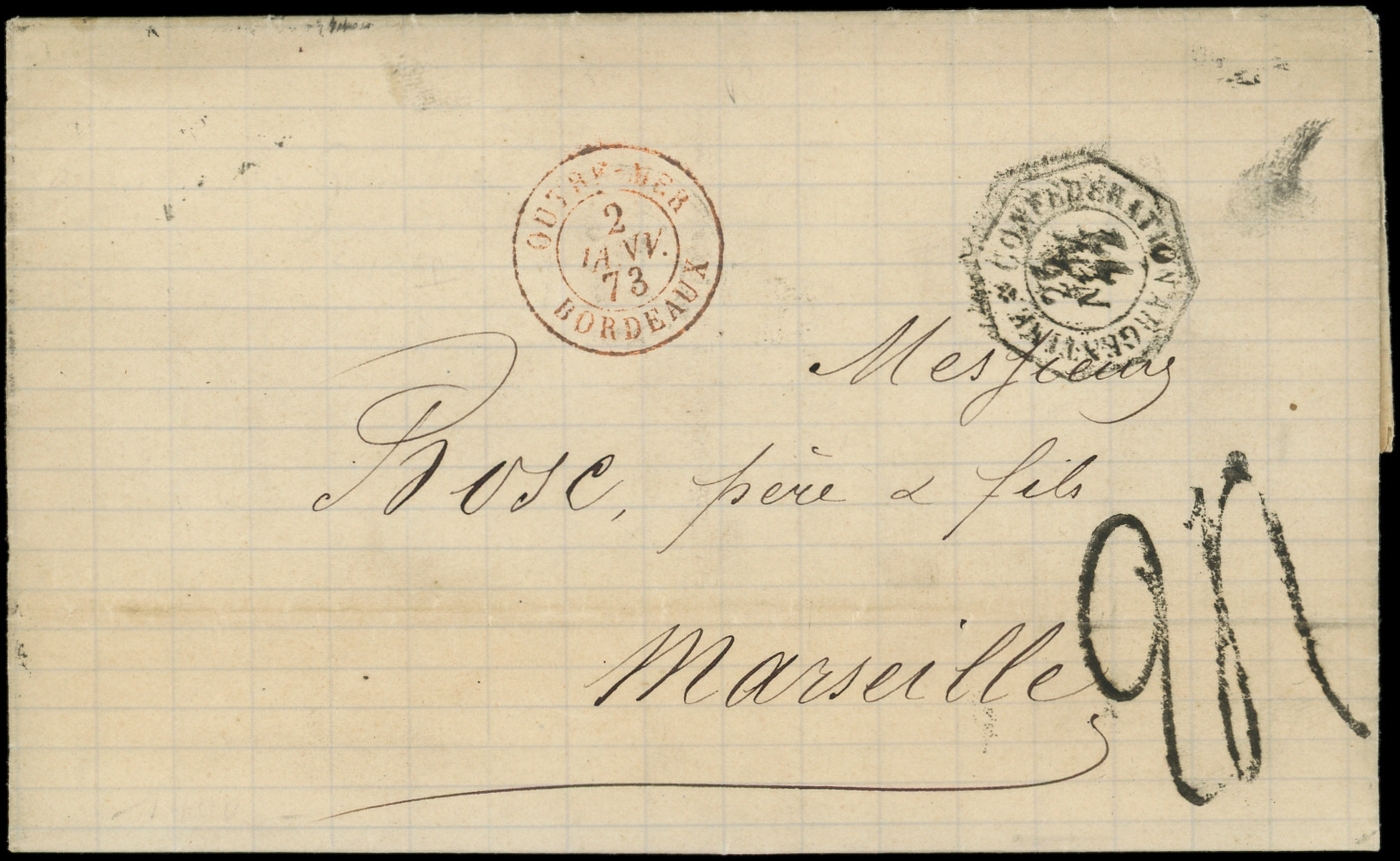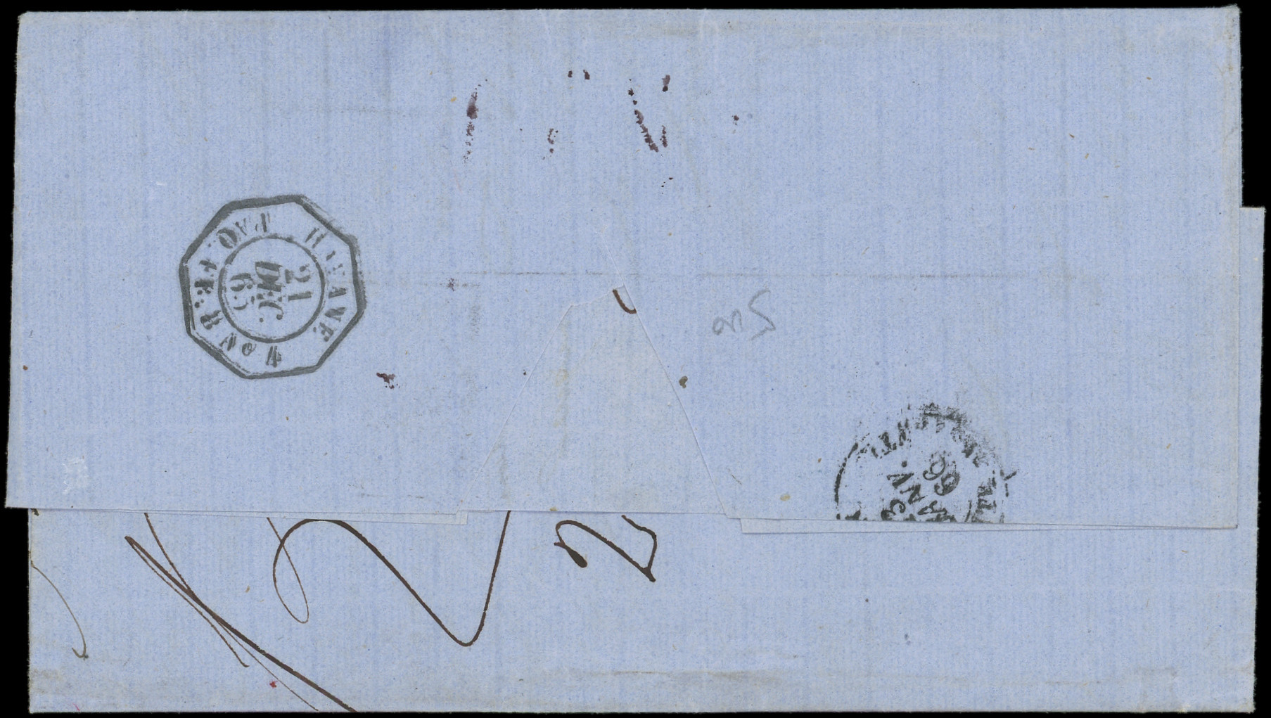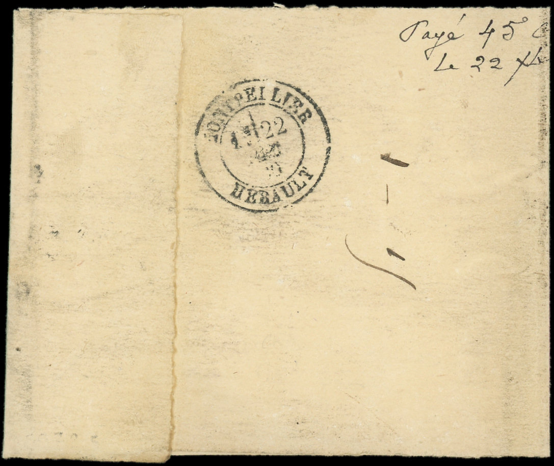 obl. ANCRE s. DL posté directement à bord du Paquebot, càd d'Escale ASPINWALL PAQ. FR. N°2 1/2/66, cachet du CONSULAT de FRANCE à PANAMA, mention manuscrite de l'expéditeur Edmond de Lesseps Consul de France. Seule lettre connue d'Aspinwall avec le