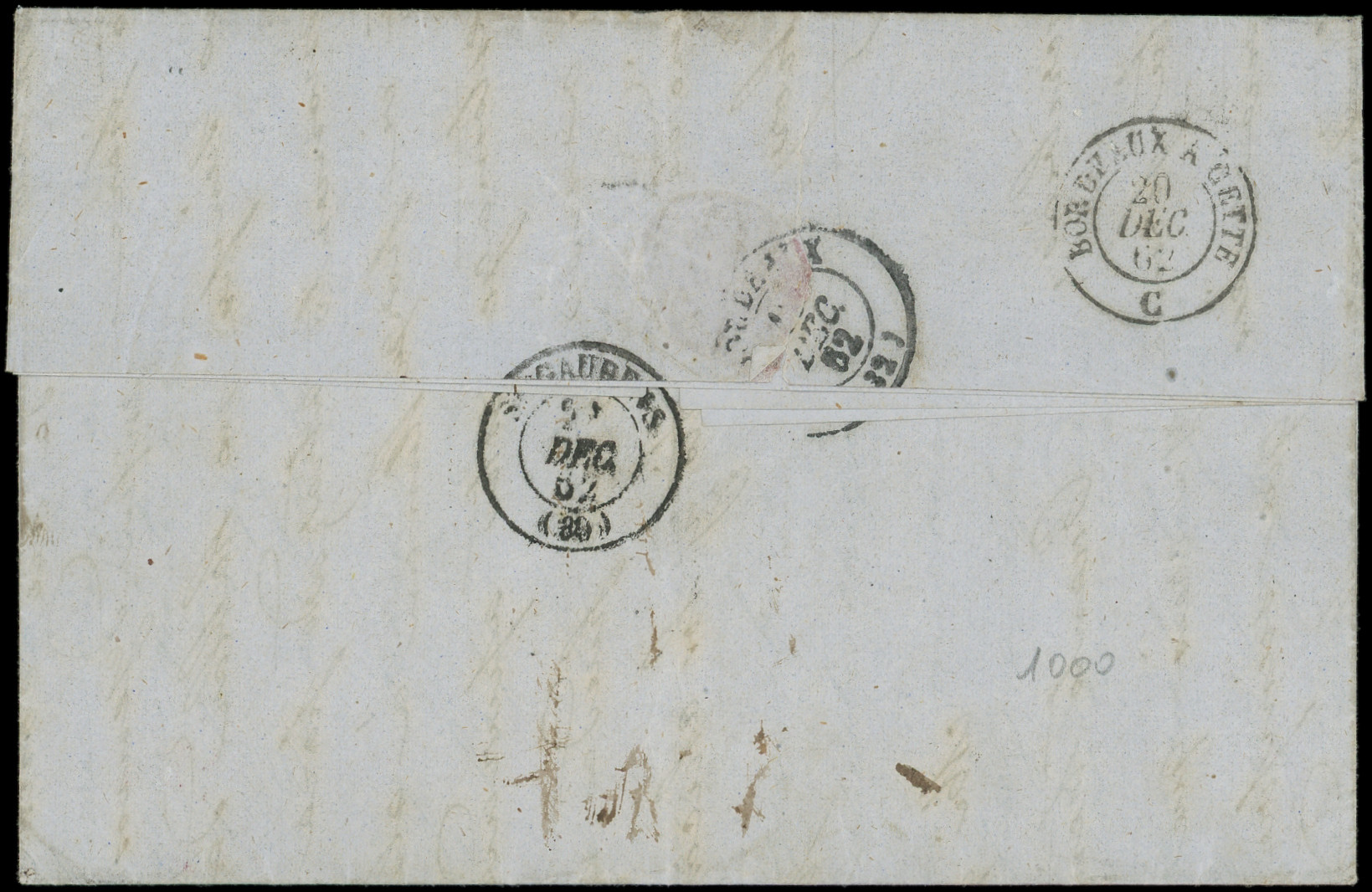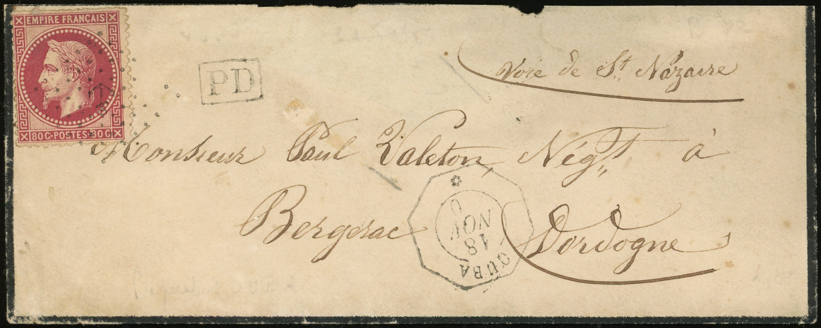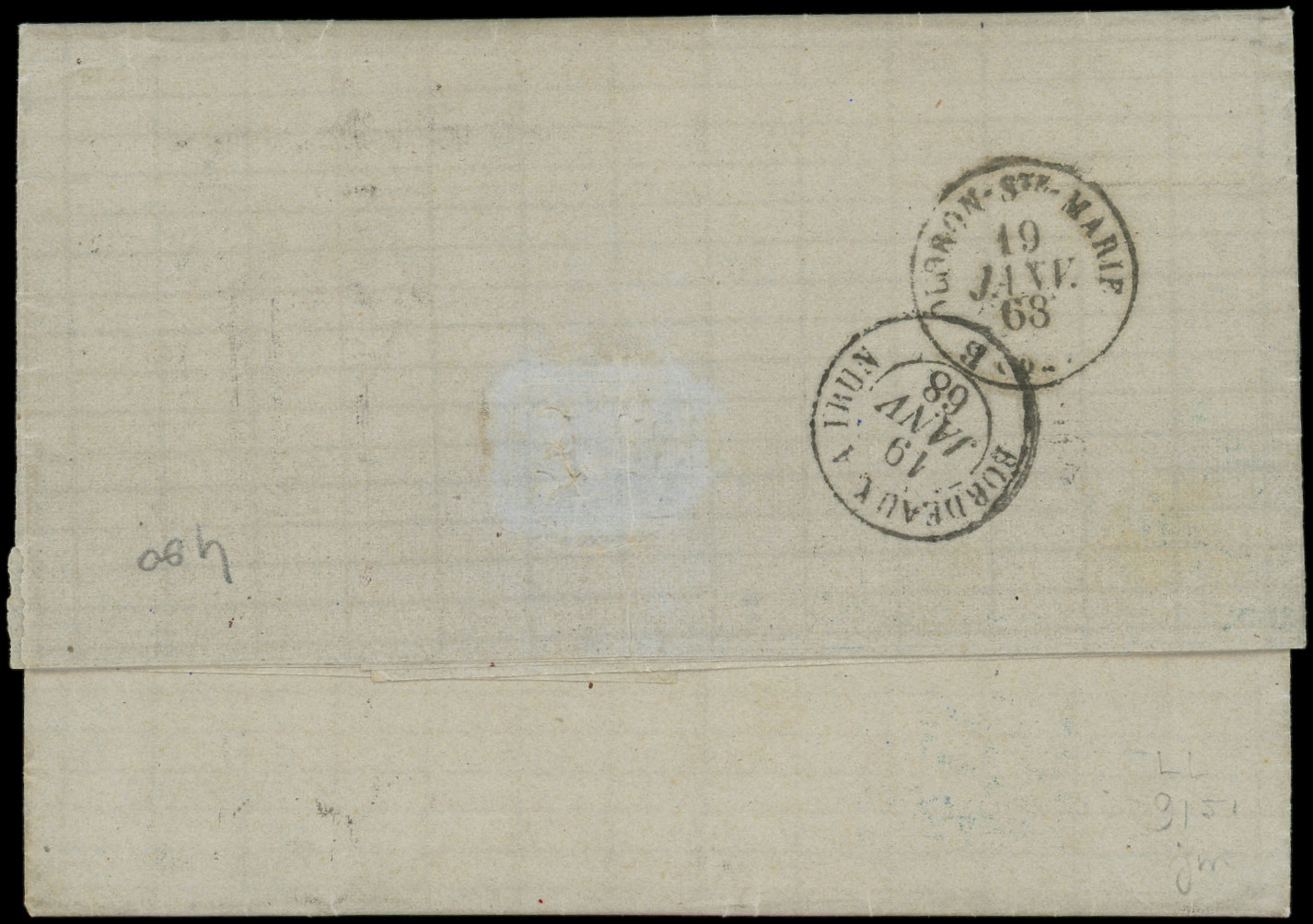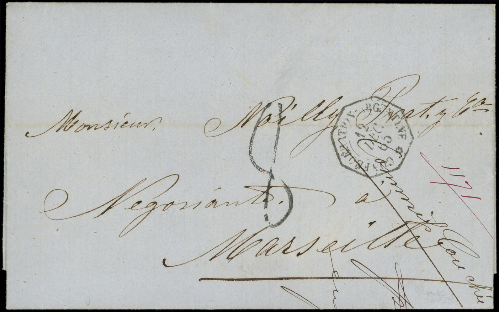 obl. ANCRE s. DL posté directement à bord du Paquebot, càd d'Escale ASPINWALL PAQ. FR. N°2 1/2/66, cachet du CONSULAT de FRANCE à PANAMA, mention manuscrite de l'expéditeur Edmond de Lesseps Consul de France. Seule lettre connue d'Aspinwall avec le