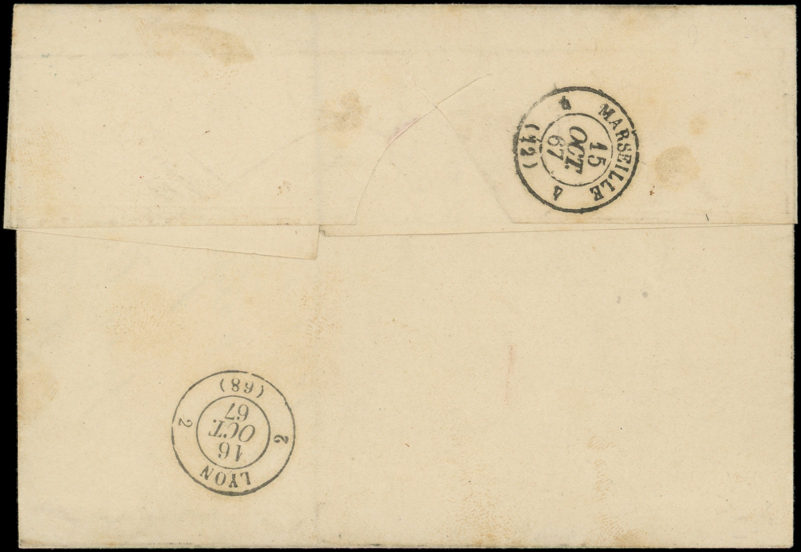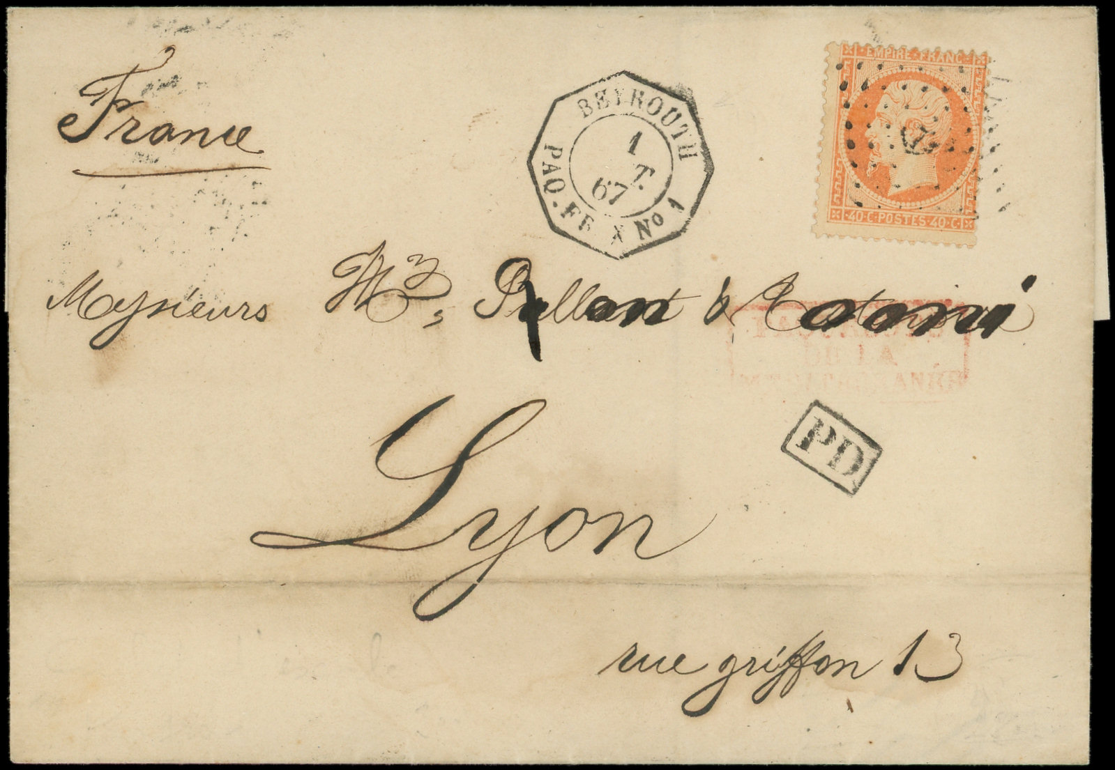 s. LSC de Beyrouth 30/9/67, càd Octog. BEYROUTH PAQ. FR. X N°1 1/-T/67, les lettres OC absentes du cachet, TTB (Image) (Image2)