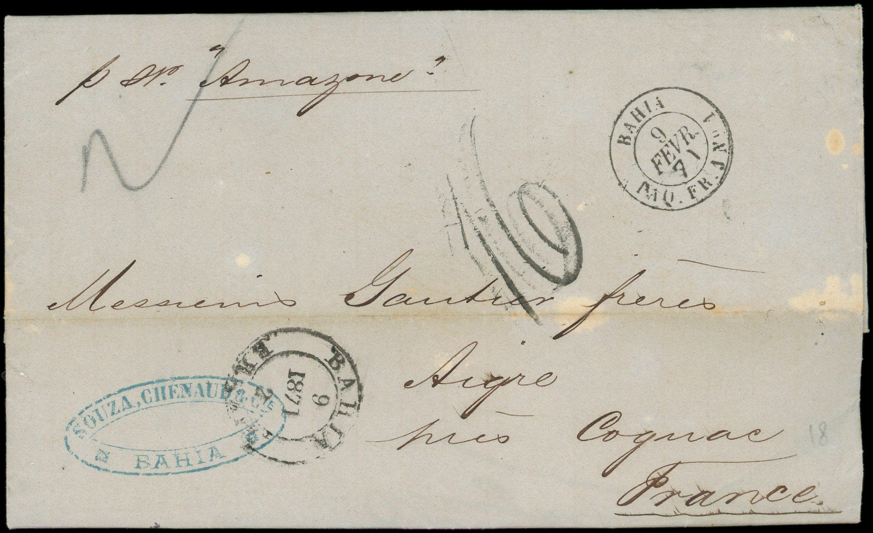 FR. J N°1 9/2/71 s. LAC, càd BAHIA BRASIL 9/2 et Taxe 16, arr. AIGRE, TB (Image)
