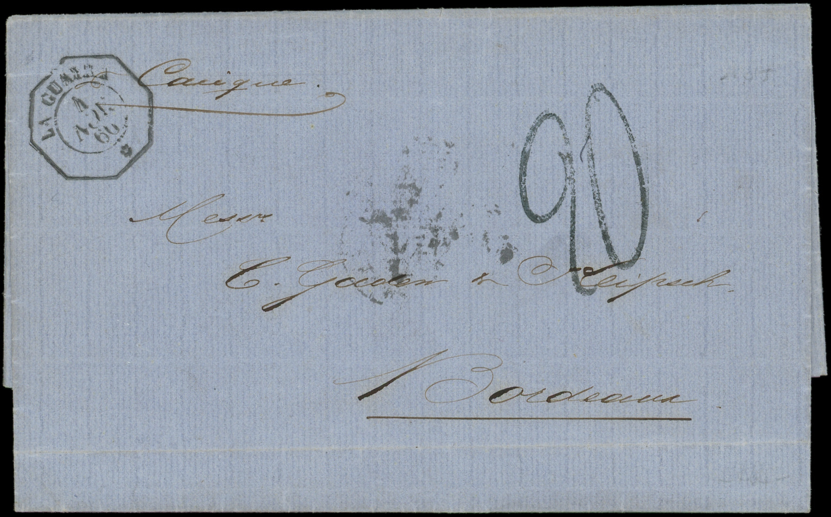 GUAYRA 4/11/66 s. LAC, Taxe 20 pour DOUBLE port, arr. Bordeaux 2/12, TTB (Image)
