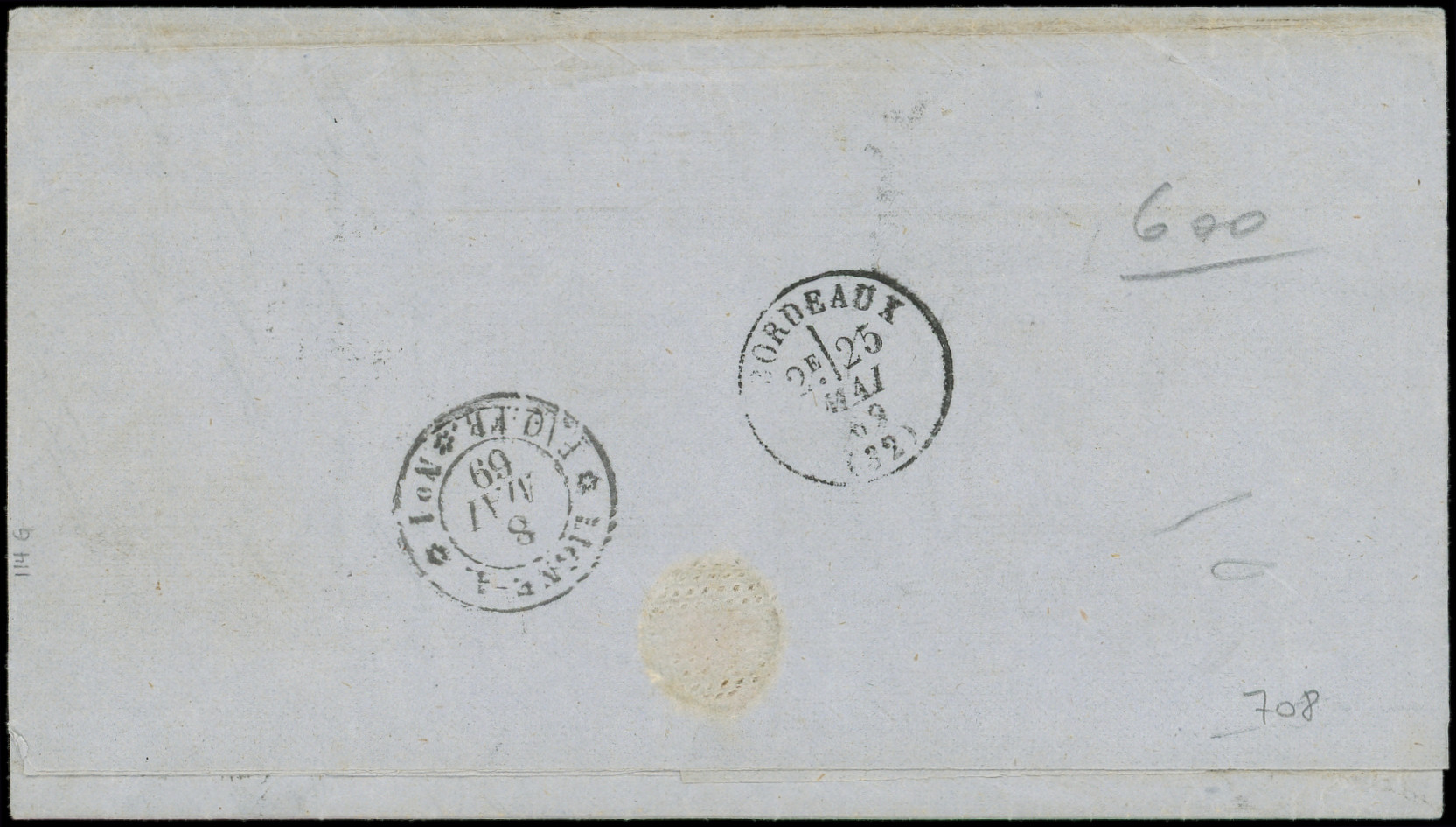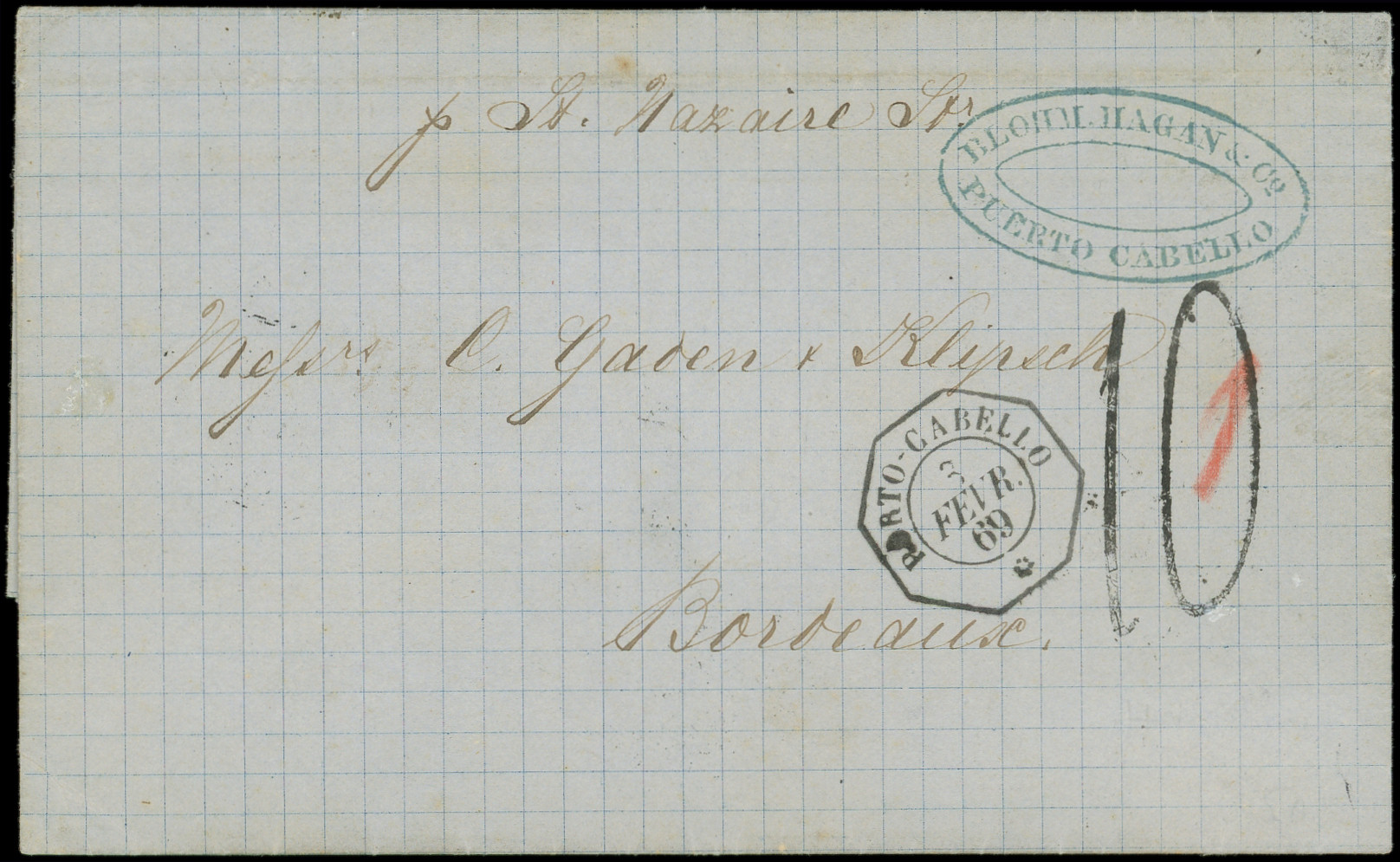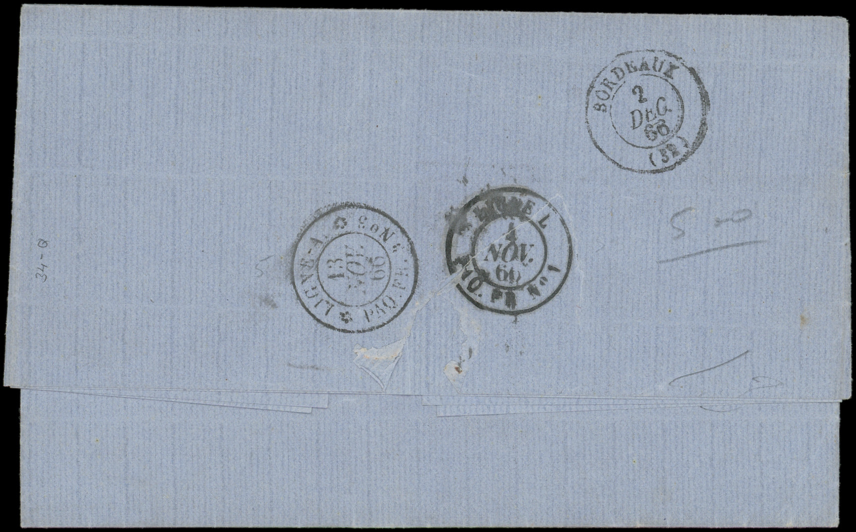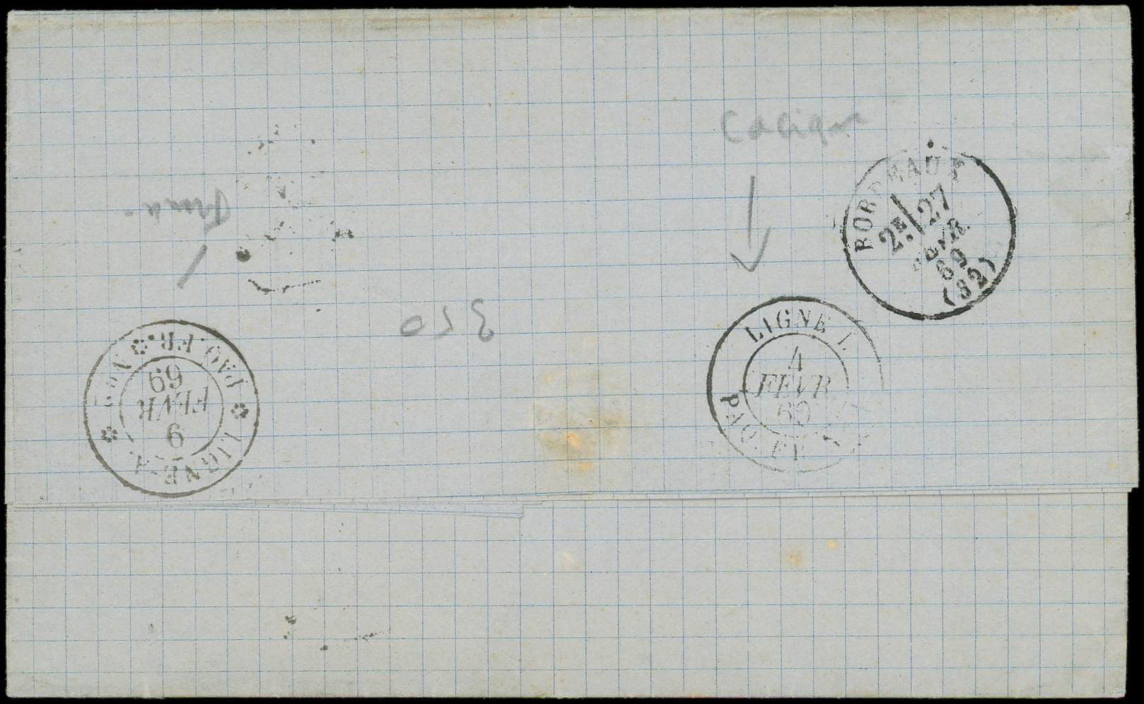 CABELLO 3/2/69 s. LAC, Taxe 10, au verso càd LIGNE L puis LIGNE A et arr. Bordeaux 27/2, TB (Image) (Image2)