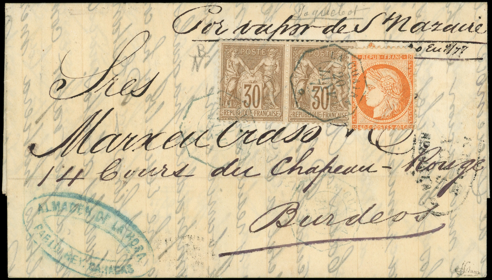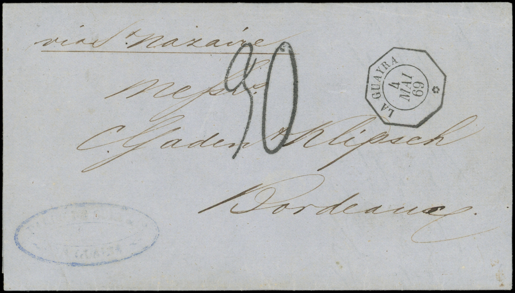 GUAYRA 4/5/69 s. LAC, Taxe 30 pour TRIPLE port, arr. Bordeaux 25/5, TTB (Image)