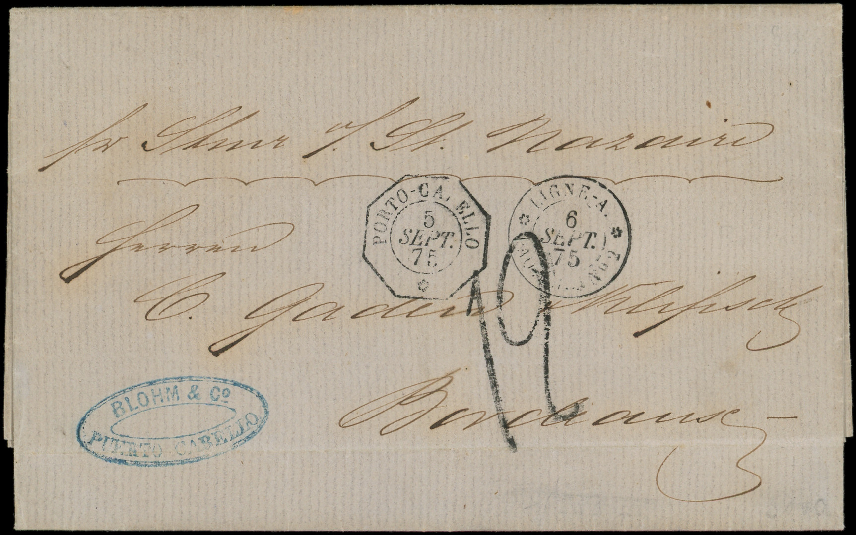 obl. càd Octog. LA GUAYRA 20/1/77 en BLEU s. LAC, arr. Bordeaux, TB (Image)