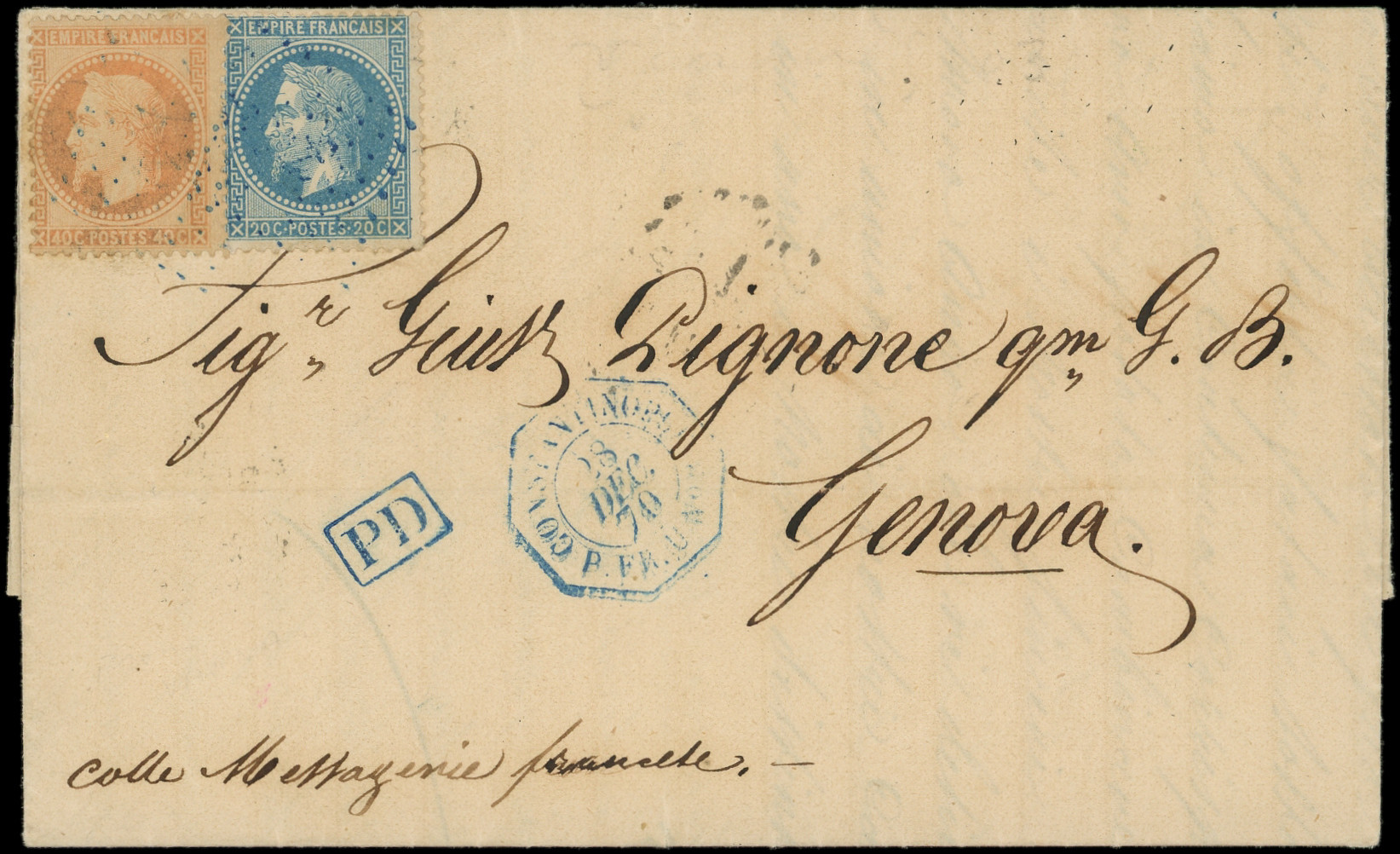 ANCRE s. LAC de VARNA 24/12, càd Octog. CONSTANTINOPLE P. FR.U N°3 28/12/70, le tout en BLEU, arr. GENOVA 7/1, TB (Image) (Image2)