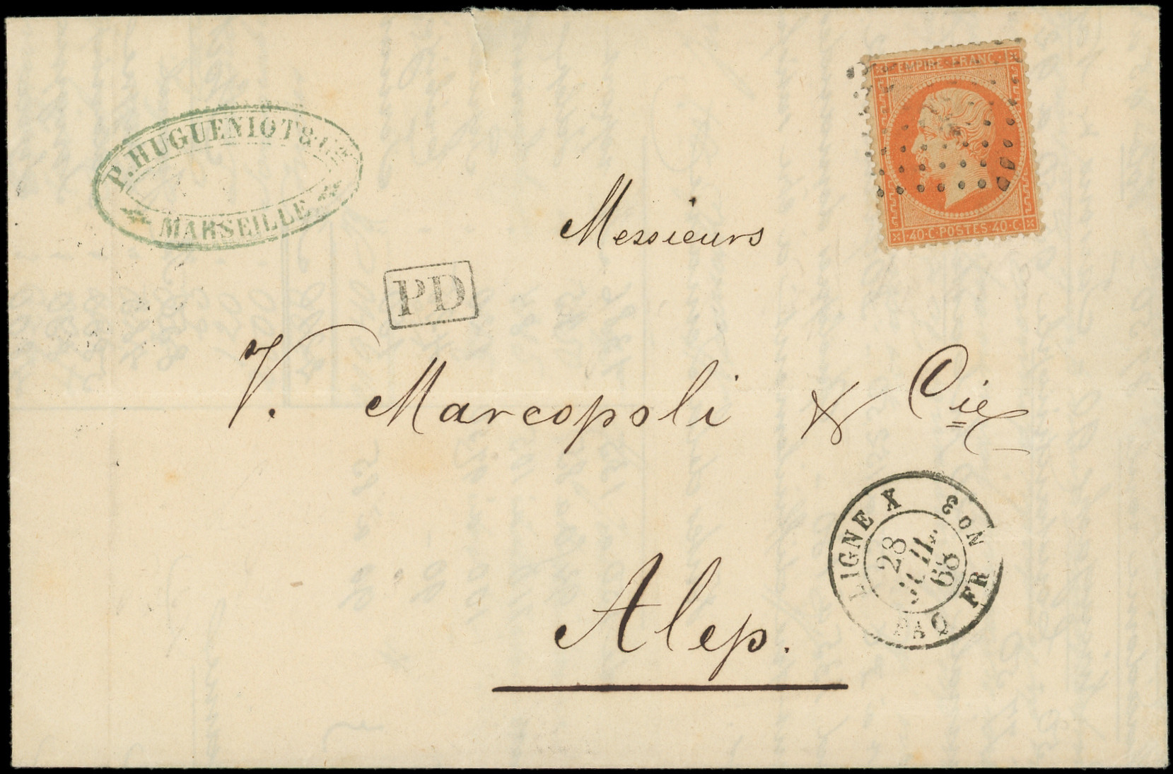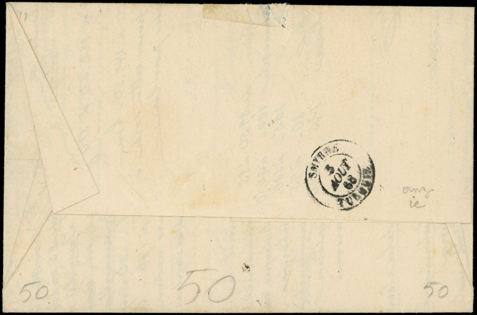 s. LAC de Marseille, càd LIGNE X PAQ FR N°3 28/7/68, arr. SMYRNE 3/8 pour ALEP, TB (Image)