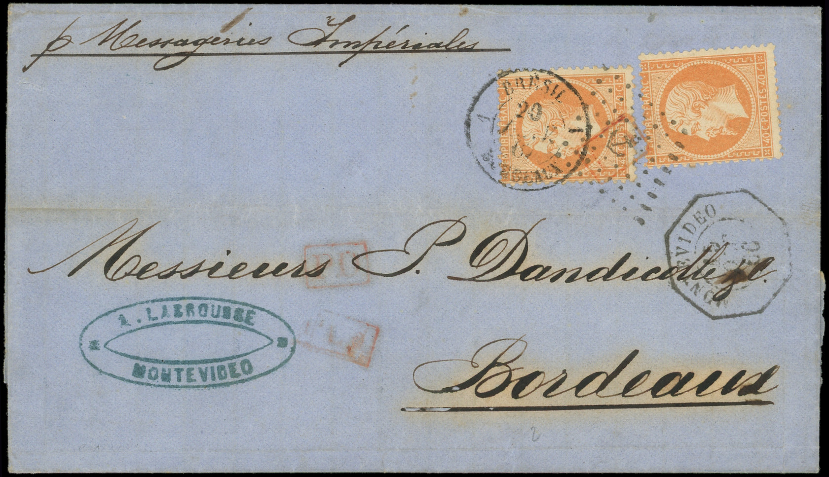 ANCRE et càd 1 BRESIL 1 BORDEAUX 20/1/67 s. LAC, càd Octog. MONTEVIDEO 15/12/66, TB (Image)