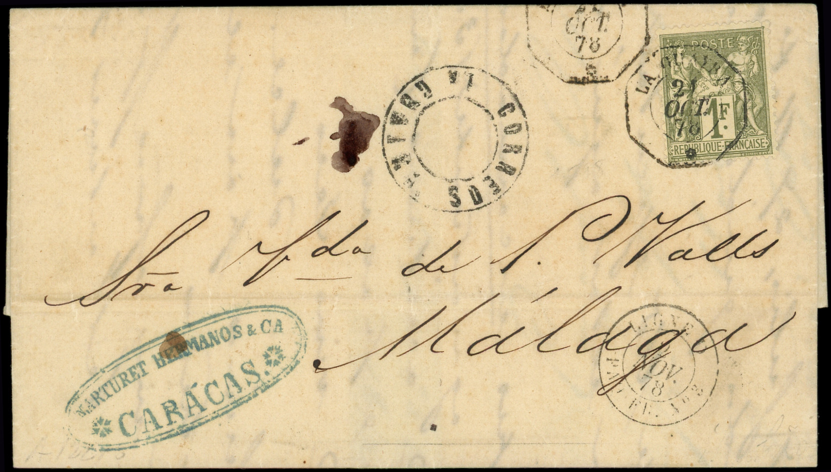 Octog. LA GUAYRA 21/10/78 s. LAC de Caracas, càd LIGNE D/PAQ FR.N°3 2/11/78 pour Malaga, TB (Image)