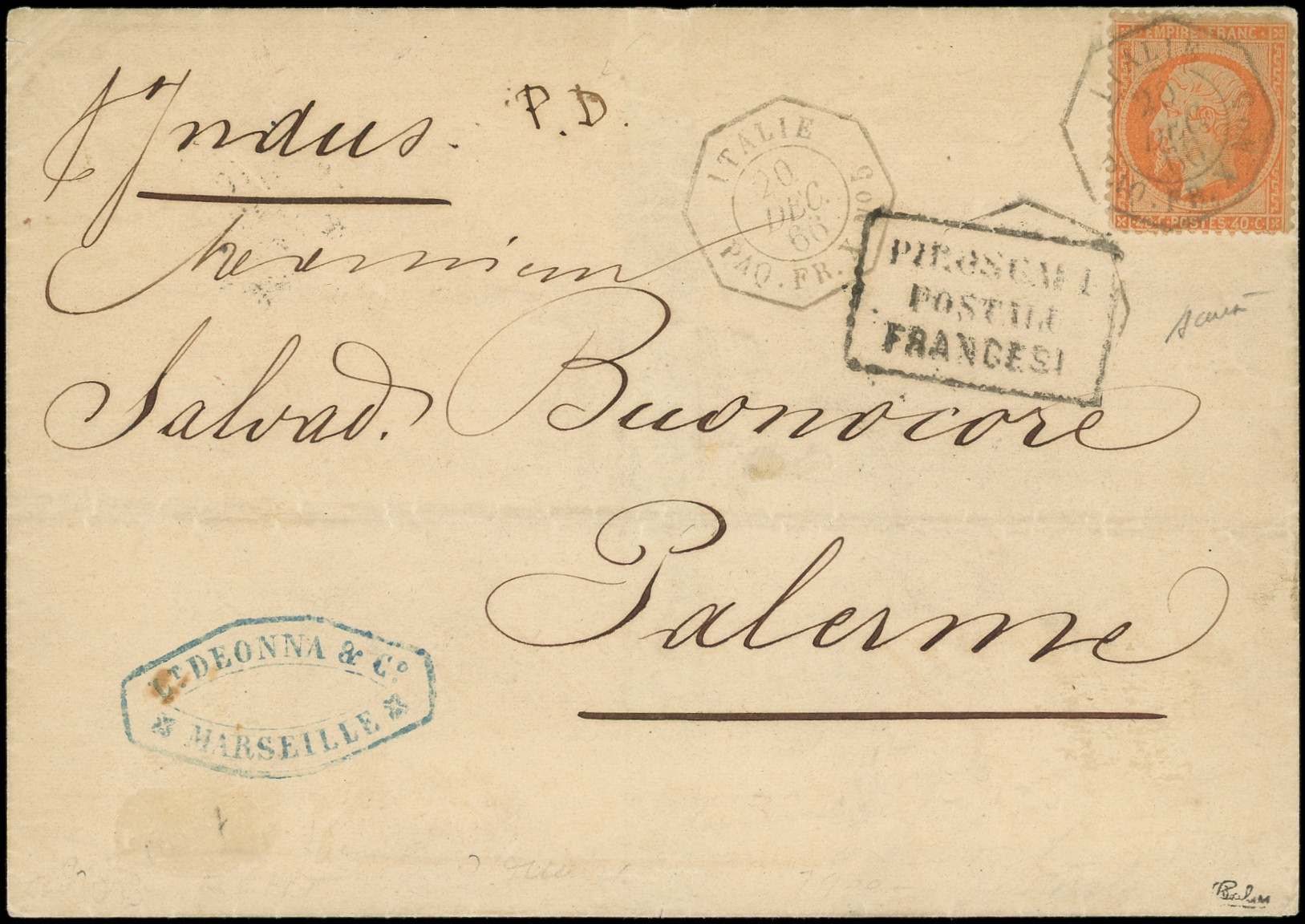 Octog. ITALIE PAQ. FR. X N°5 20/12/66 s. LSC de Marseille par Paquebot "Indus" pour PALERMO 20/12, TTB. C (Image)