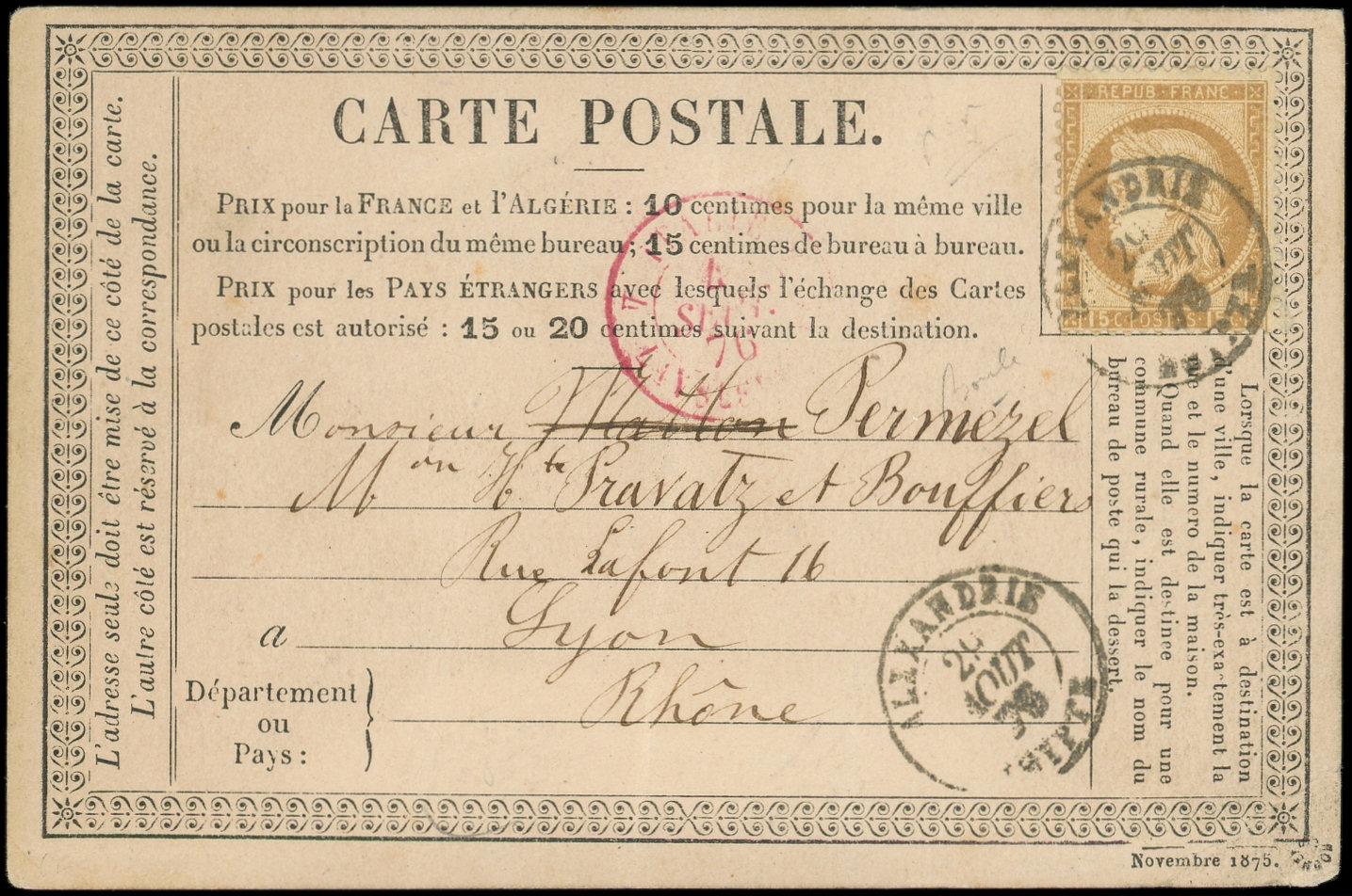 ALEXANDRIE EGYPTE 29/8/76 s. CP, càd rouge ITALIE LANSLEBOURG pour LYON, RR ainsi, TB (Image)