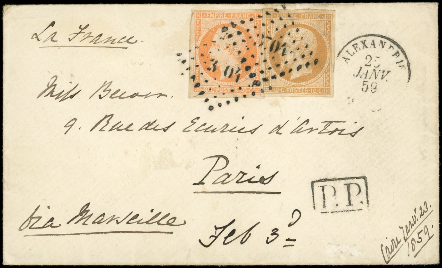 PC 3704 s. Env., càd ALEXANDRIE 25/1/59, arr. Paris 8/2, Superbe (Image)