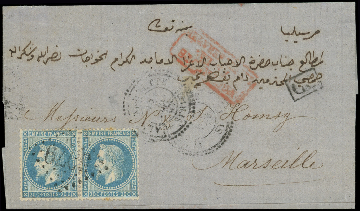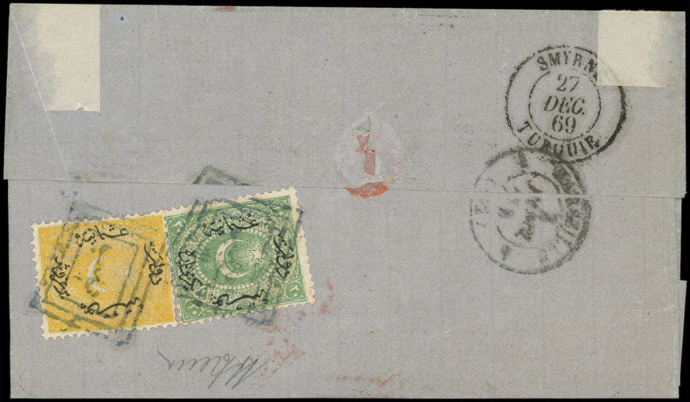 s. LSC, càd ALEXANDRETTE 23/3/69, MIXTE avec 10pa. vert et 1pi. jaune de TURQUIE, passage SMYRNE 27/3 et arr. Marseille 5/4, DOUBLE port, TTB (Image) (Image2)