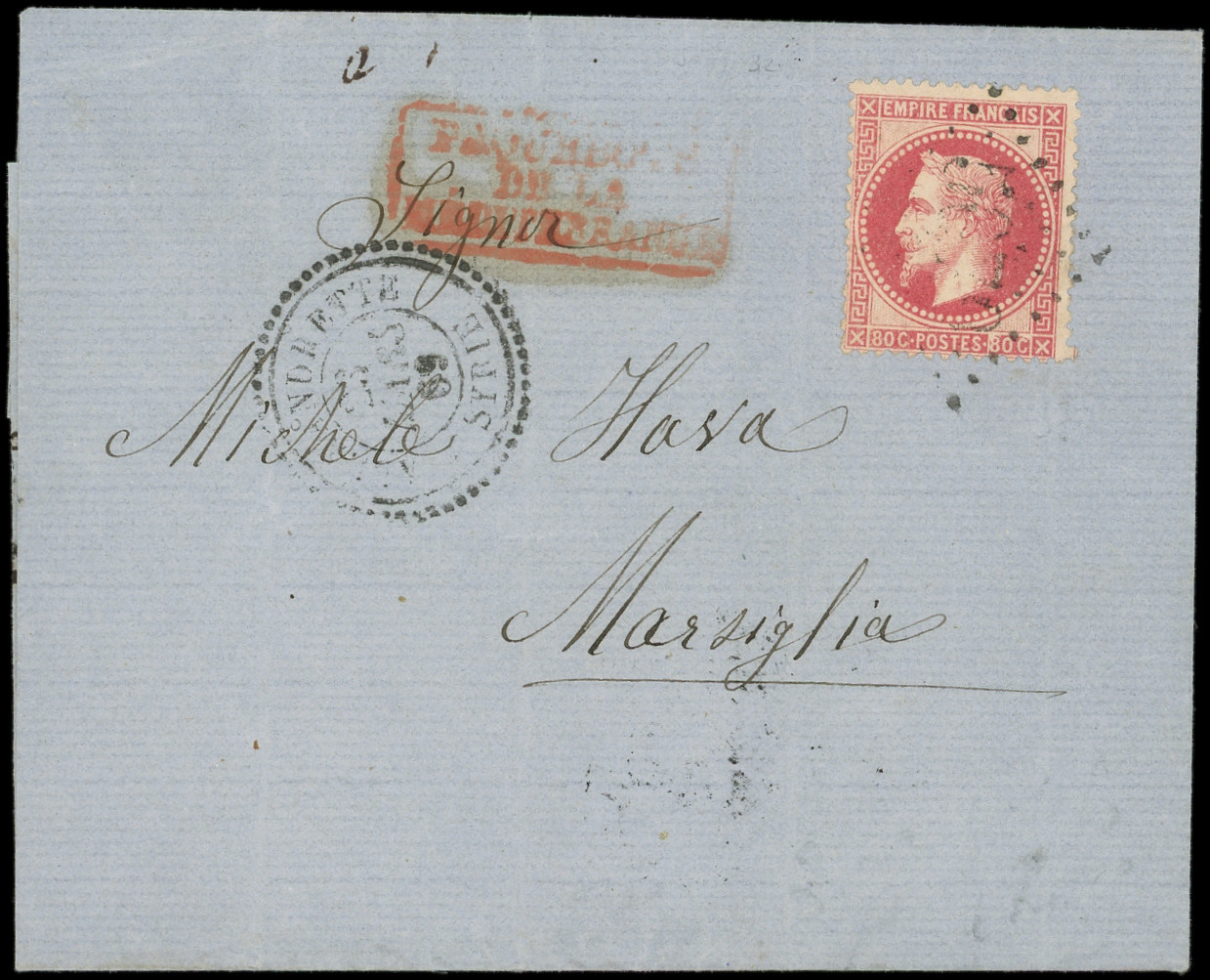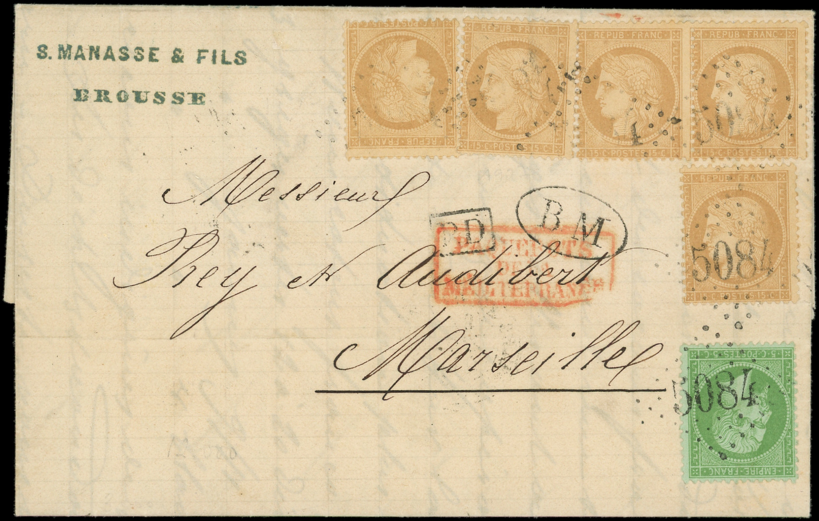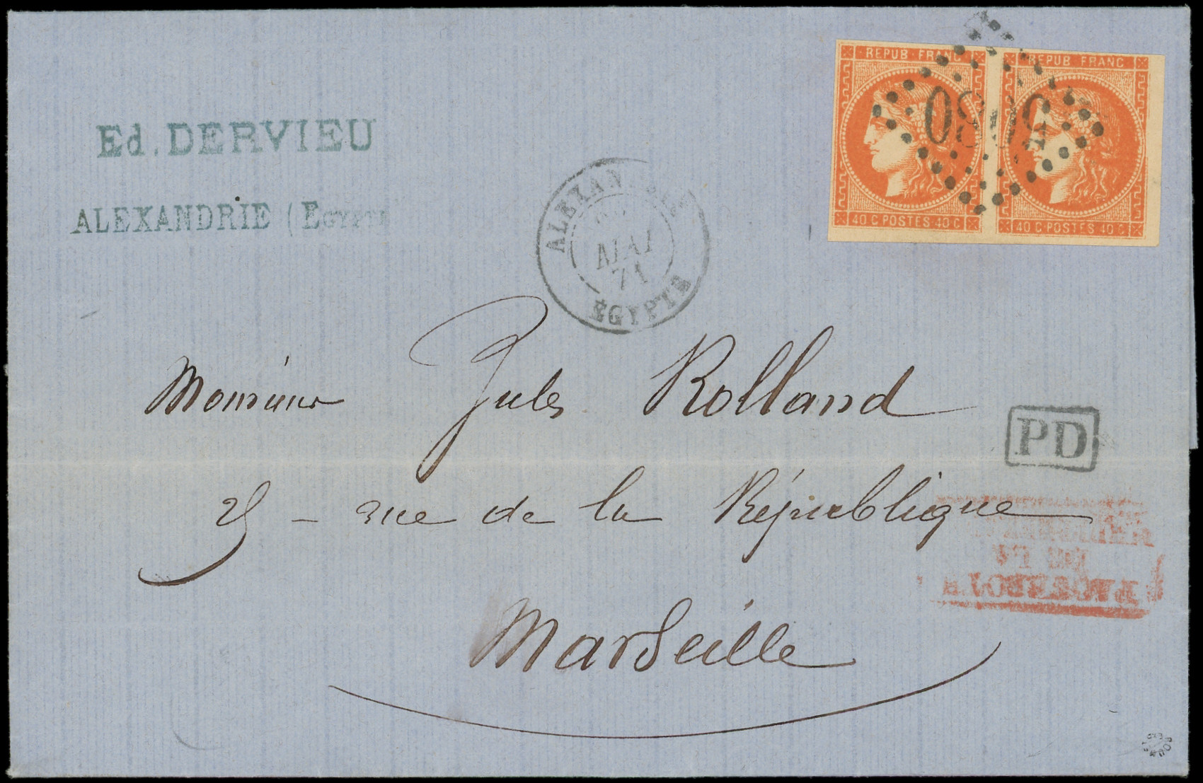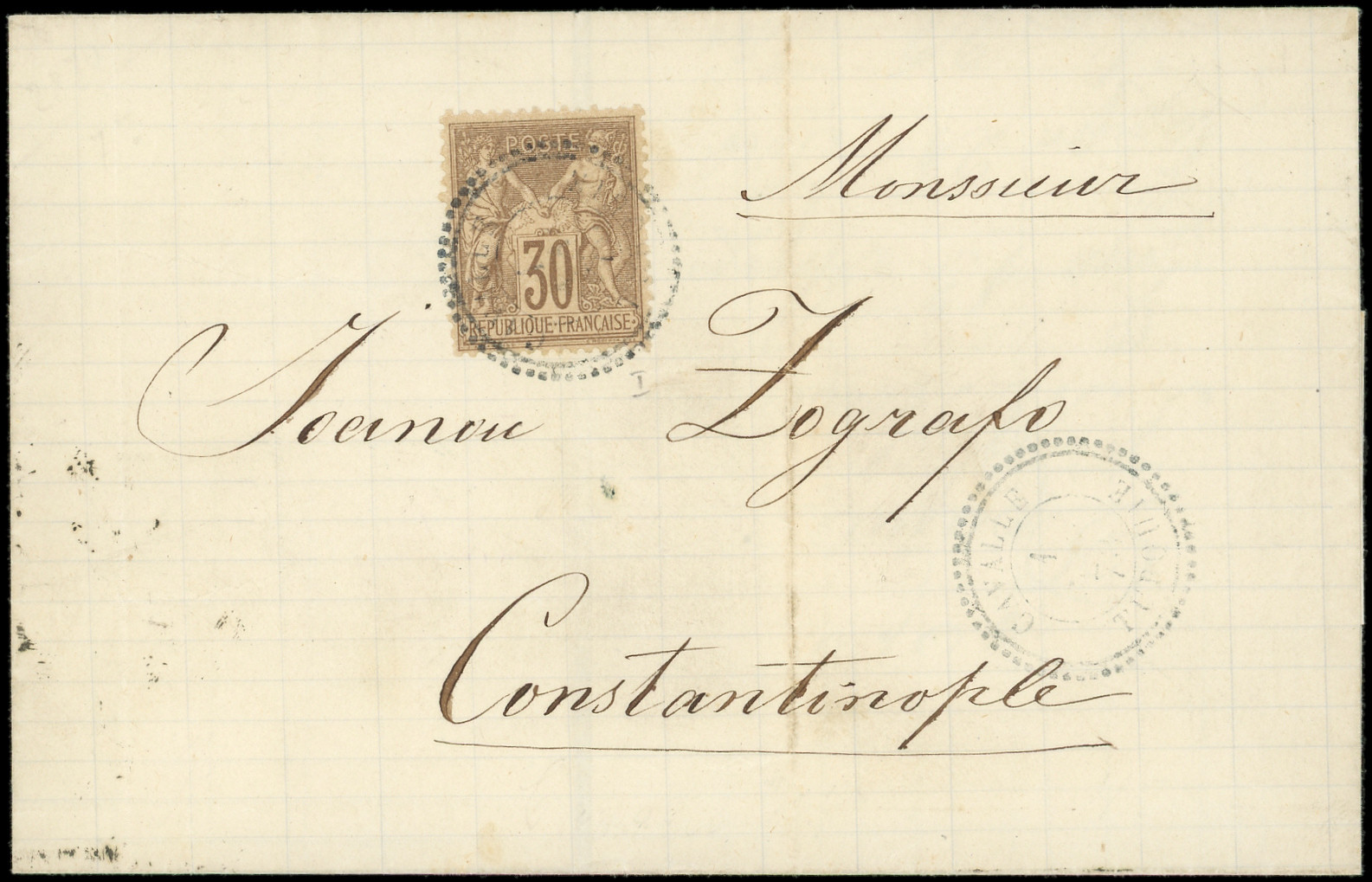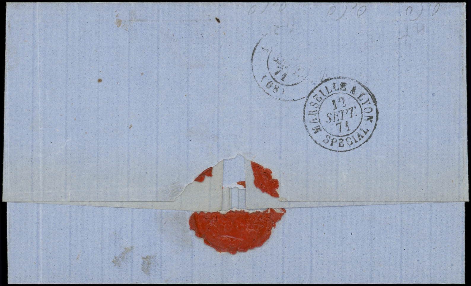 l'un effl.) et N°47 PAIRE (1 t. touché) obl. GC 5083 s. LSC, càd CONSTANTINOPLE 6/9/71, arr. Lyon, affrt RR et très plaisant (Image) (Image2)