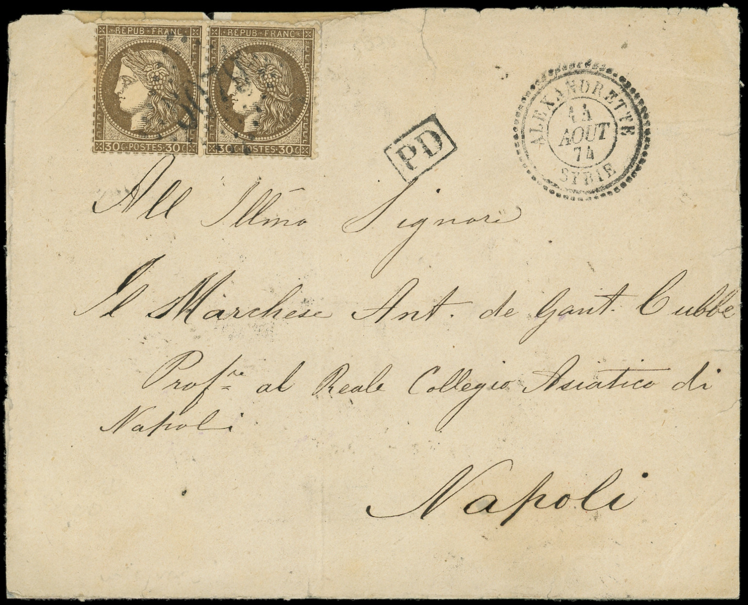 GC 5079 s. Env., càd ALEXANDRETTE 14/8/74, MIXTE avec 1pi. jaune déf. et 10pa. brun-gris (2) de TURQUIE, passage SMYRNE 19/8 et arr. NAPOLI 27/8, TTB (Image) (Image2)
