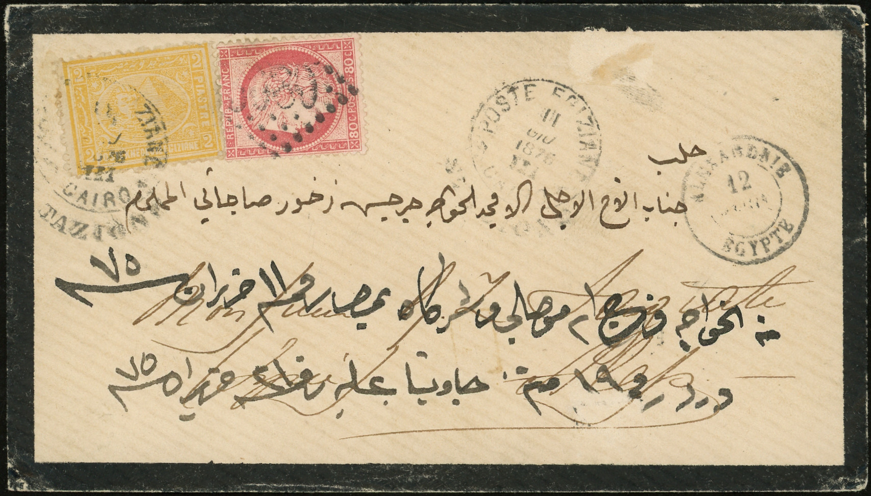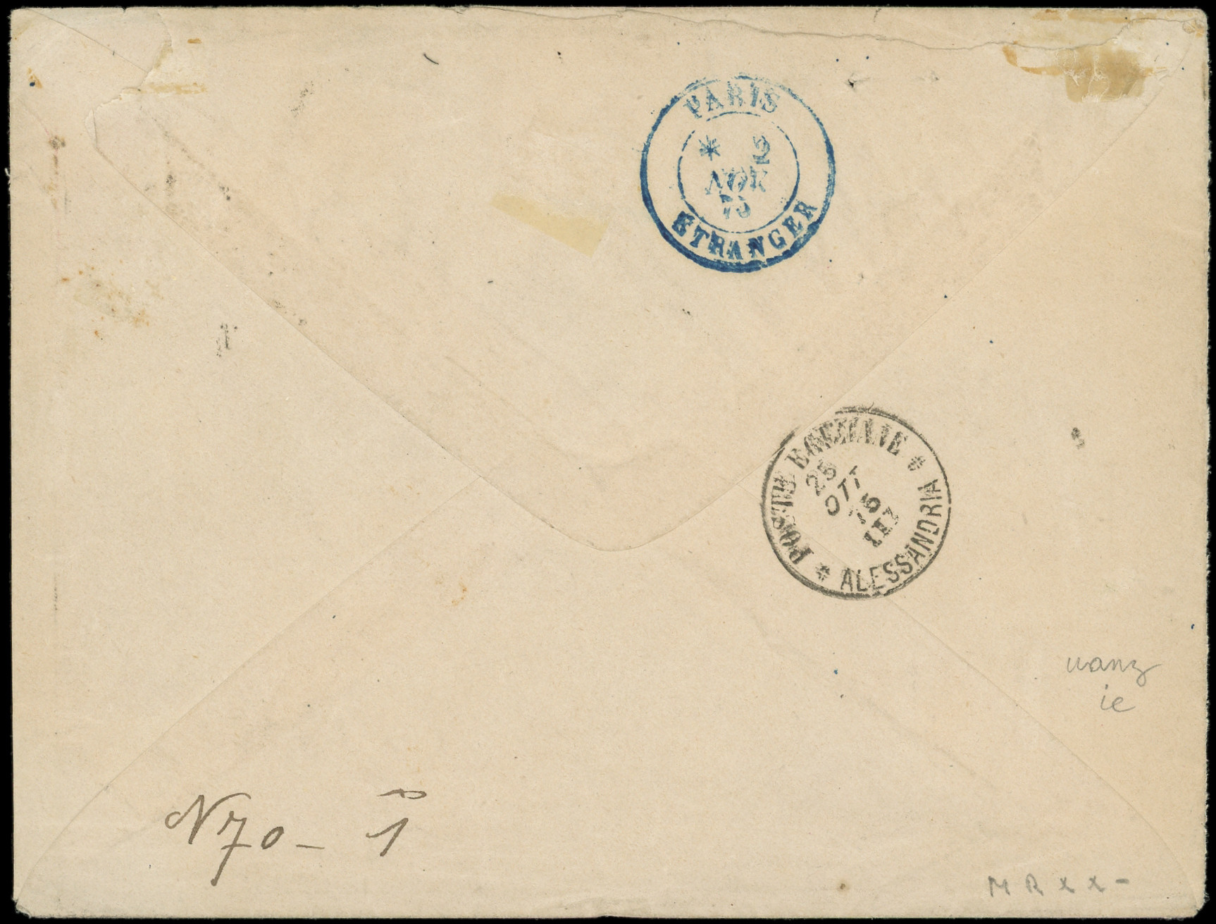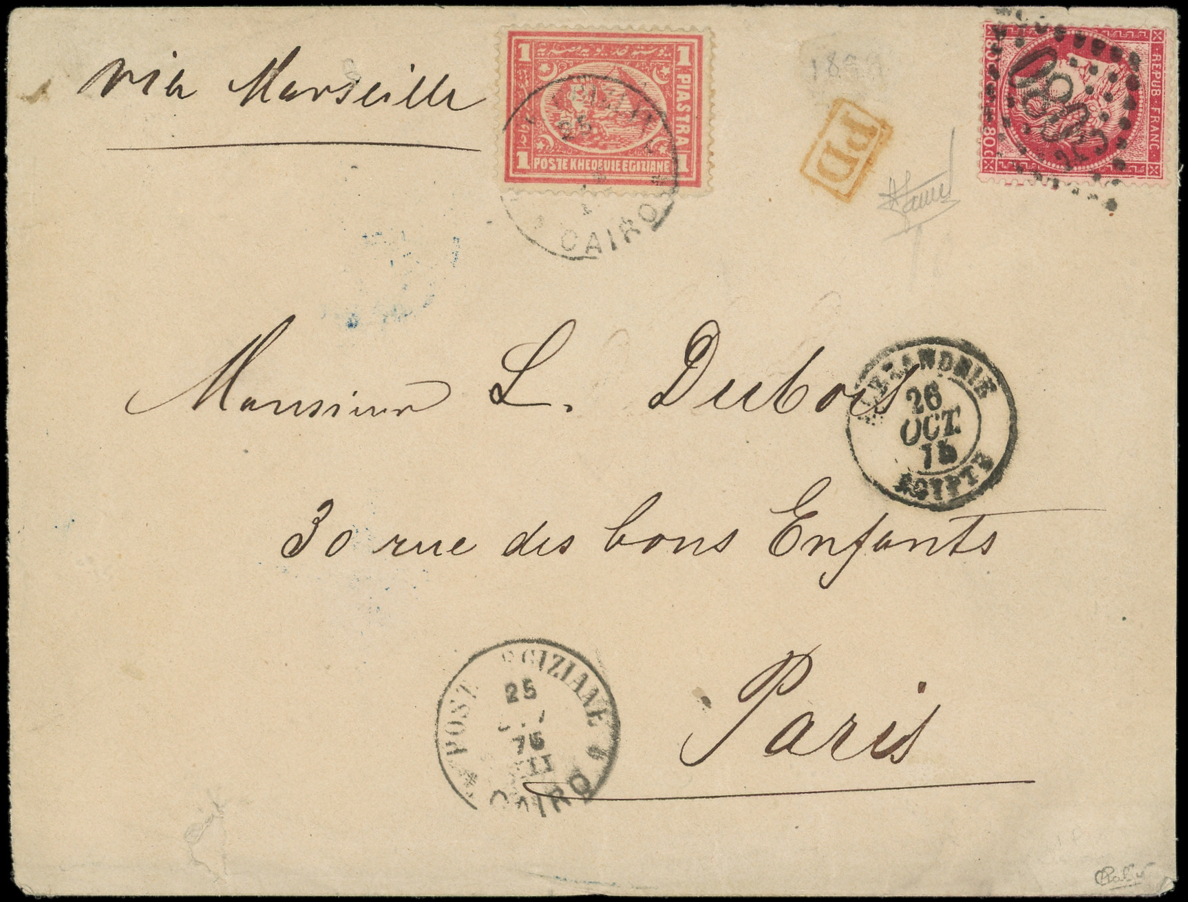 s. Env., càd ALEXANDRIE 26/10/75, MIXTE avec 1pi. rouge d'EGYPTE obl. POSTE EGIZIANE CAIRO 25/10, arr. Paris, TTB (Image) (Image2)
