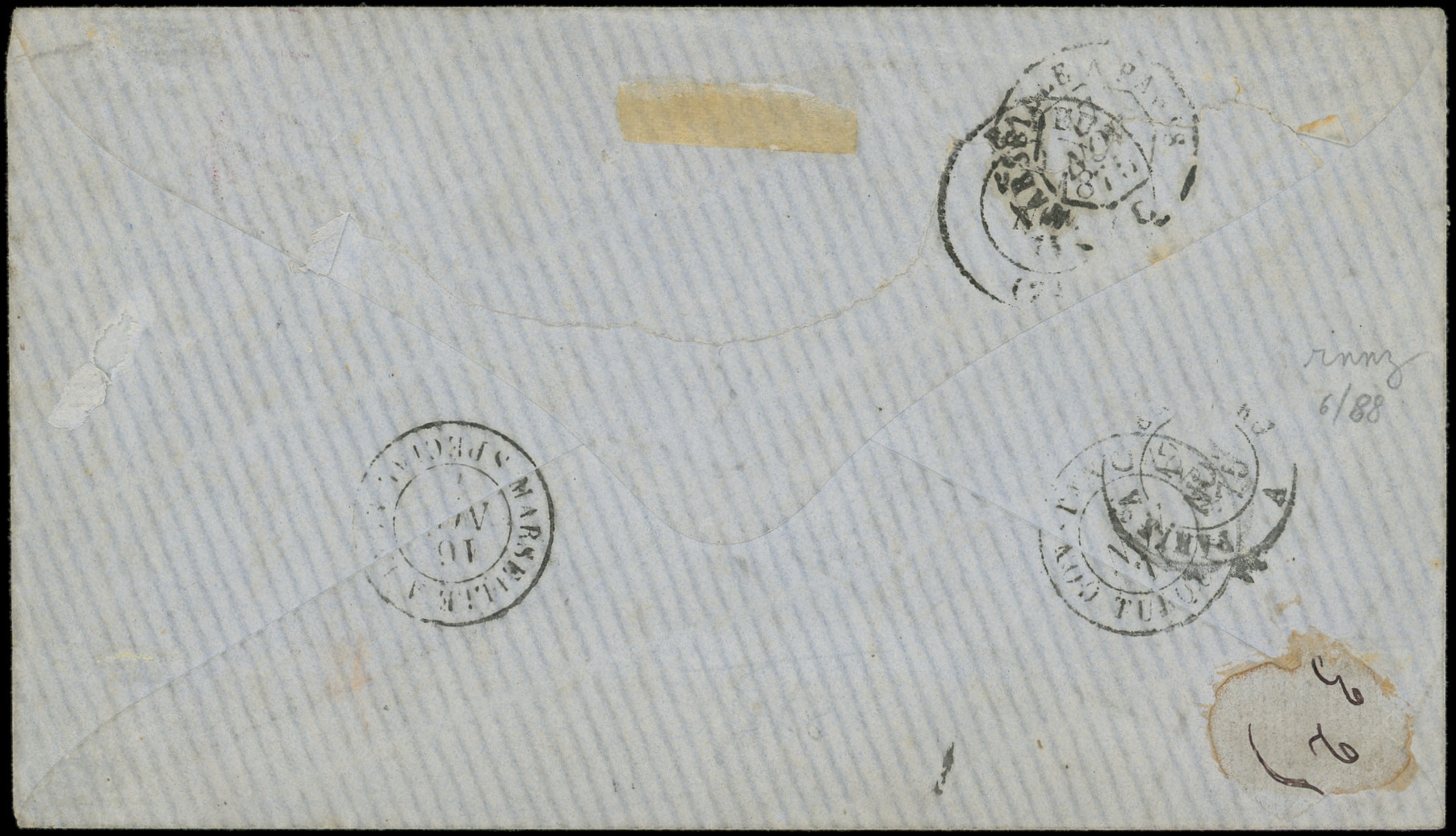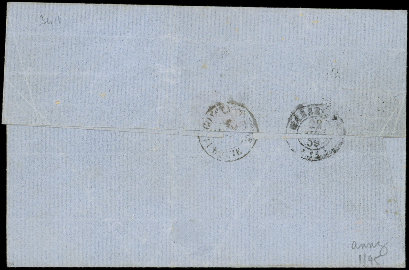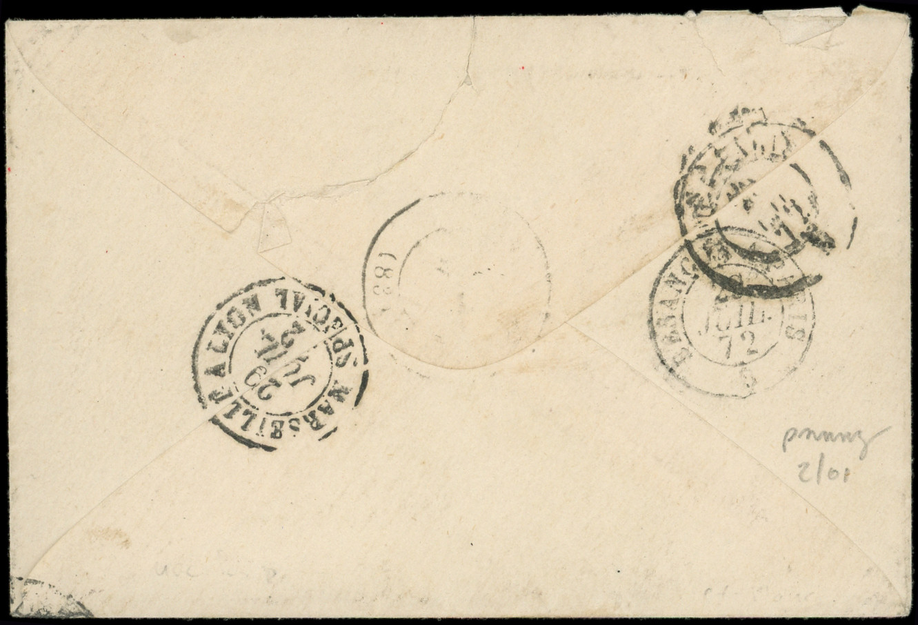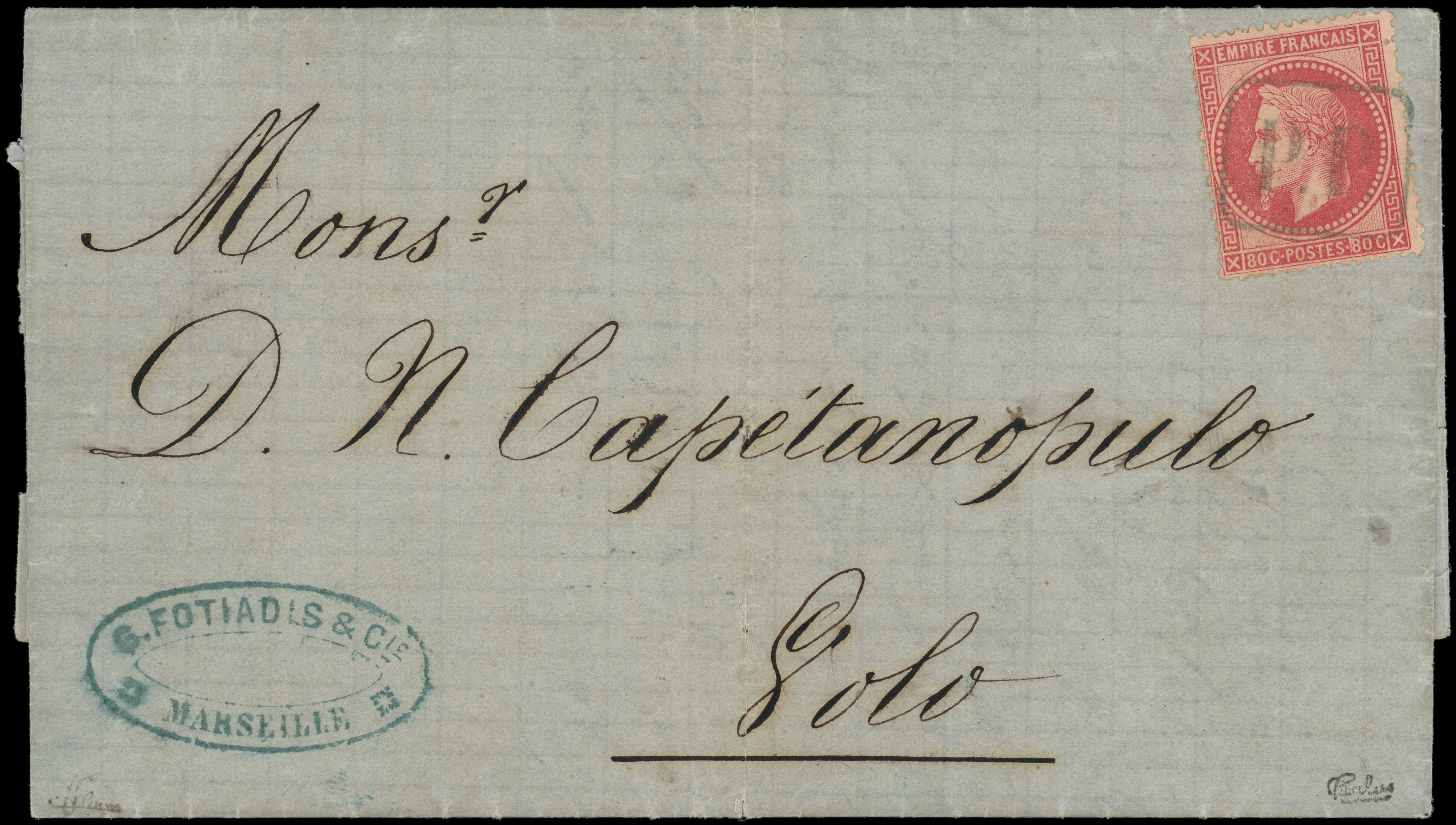 bleu encadré s. LAC de Marseille 21/12/71, oblitérée à l'arrivée à VOLO, grande RARETE, Superbe (Image)