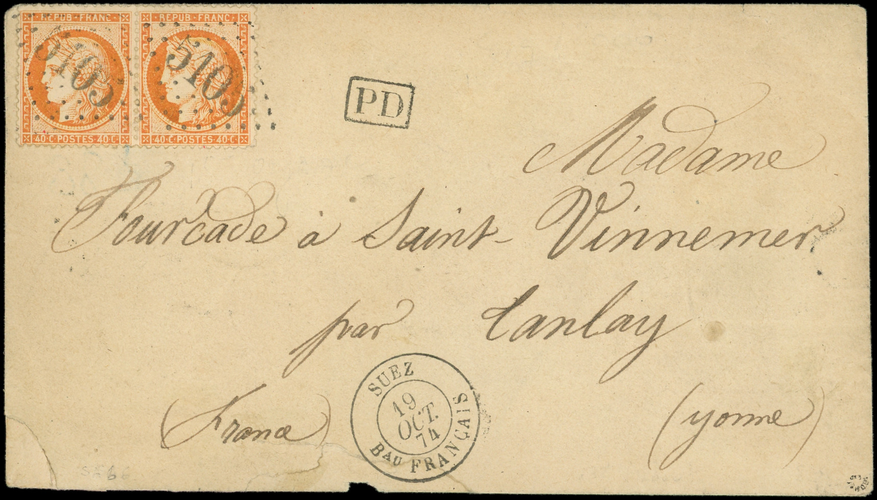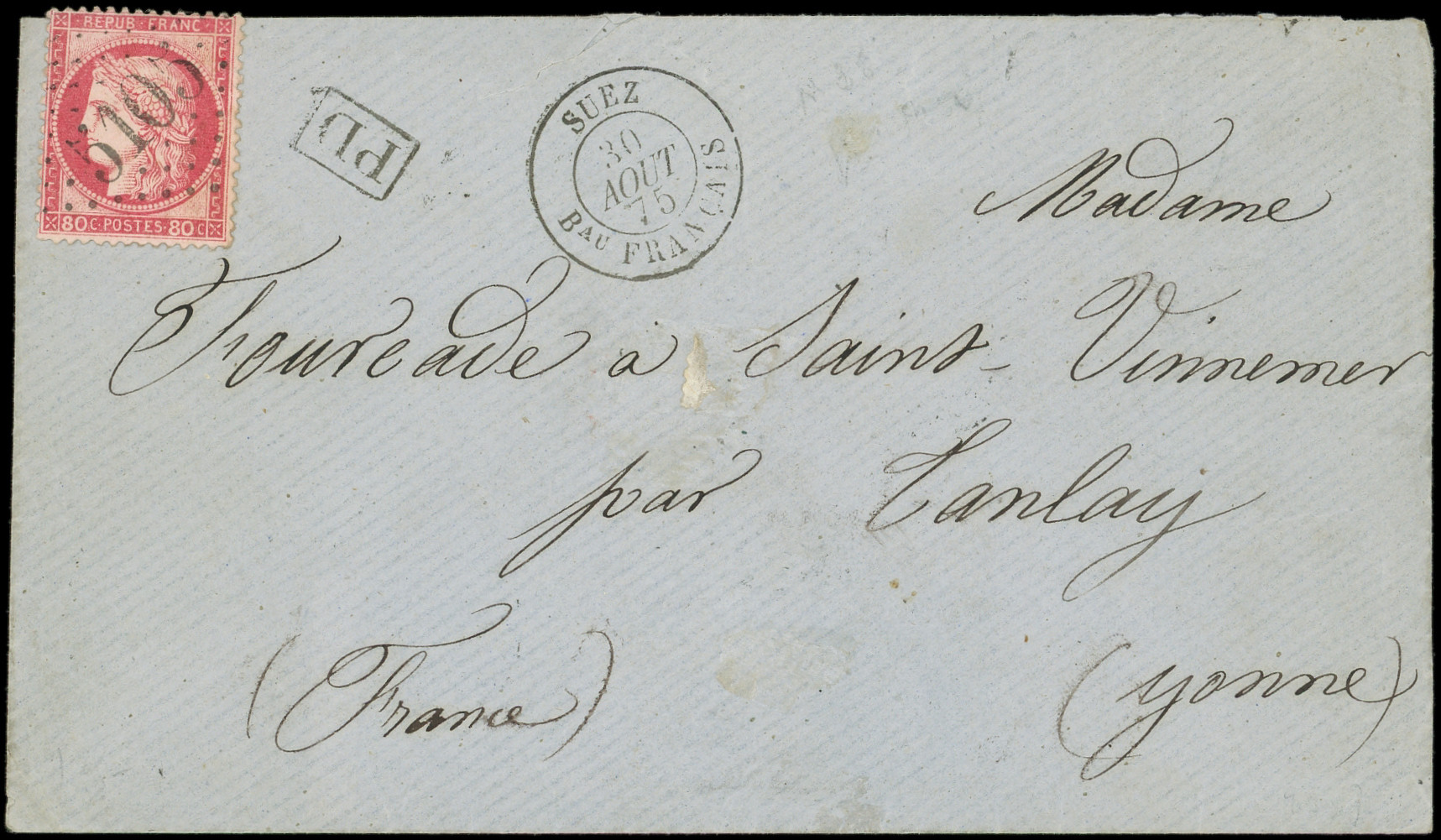 s. Env., càd T15 SUEZ Bau FRANCAIS 30/8/75, arr. Tanlay 7/9, Superbe (Image)