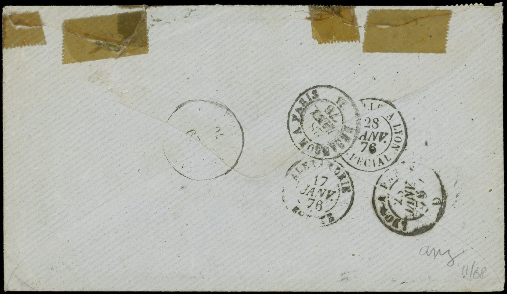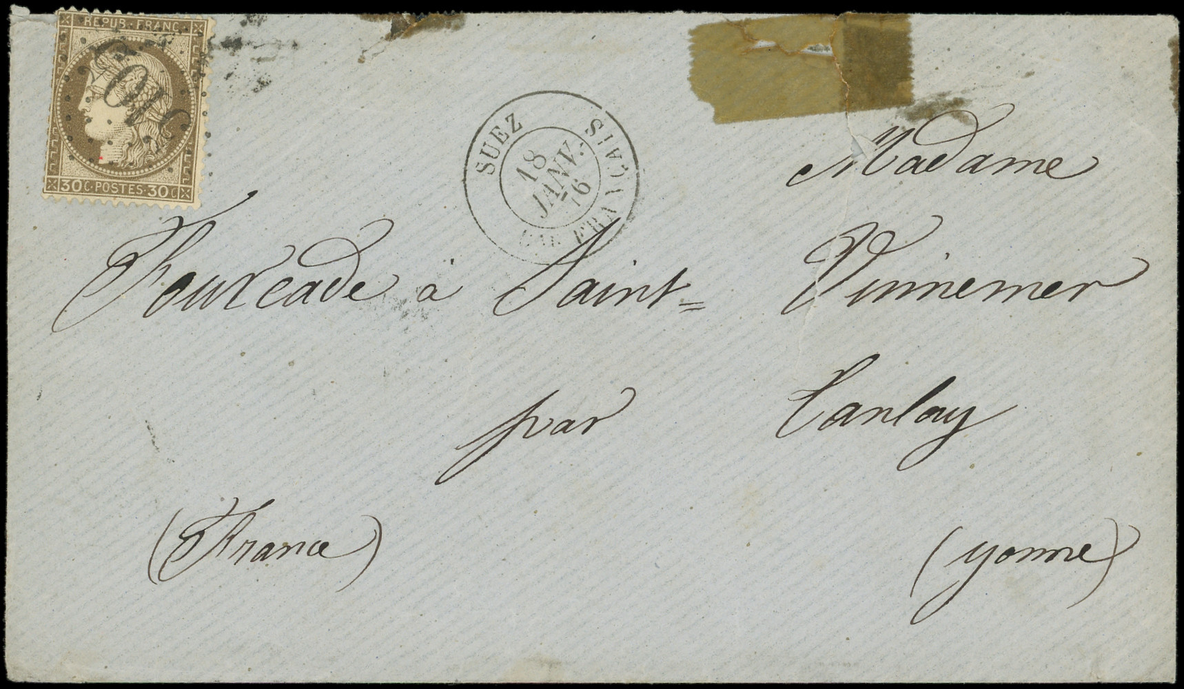 s. Env., càd SUEZ Bau FRANCAIS 18/1/76, passage ALEXANDRIE et arr. Tanlay 29/1, TB (Image)
