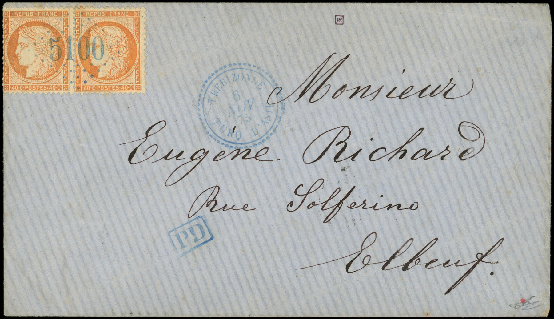 GC 5100 s. Env., càd TREBIZONDE 6/11/75, le tout en bleu, passage CONSTANTINOPLE 9/11 et arr. ELBEUF, TB (Image) (Image2)