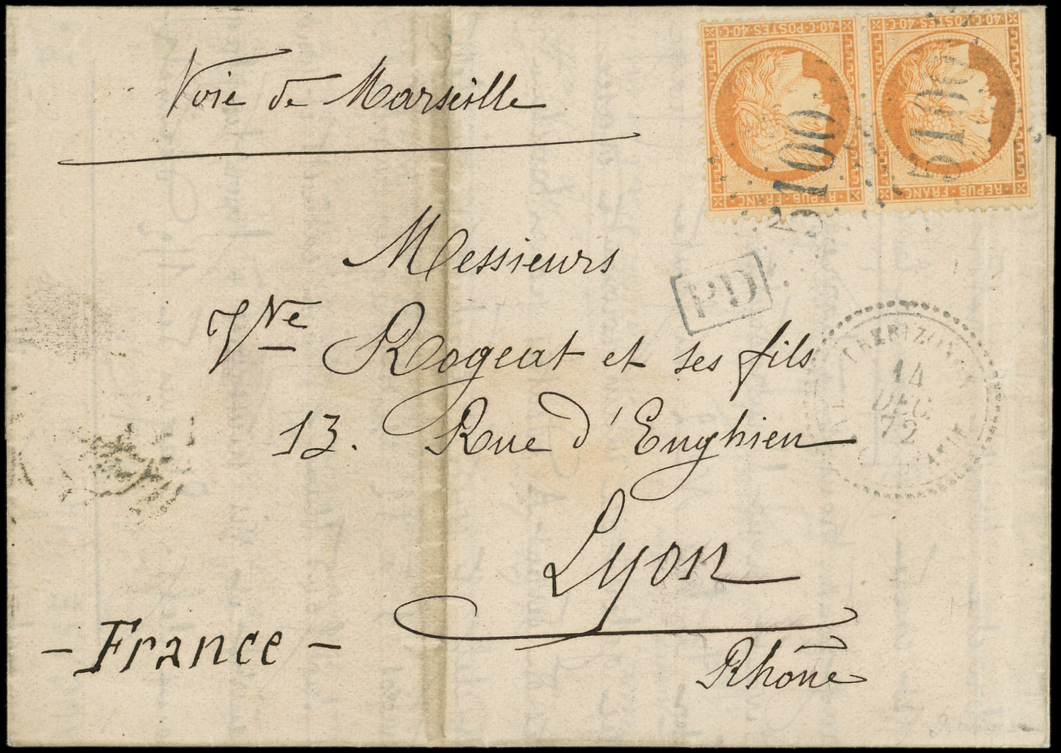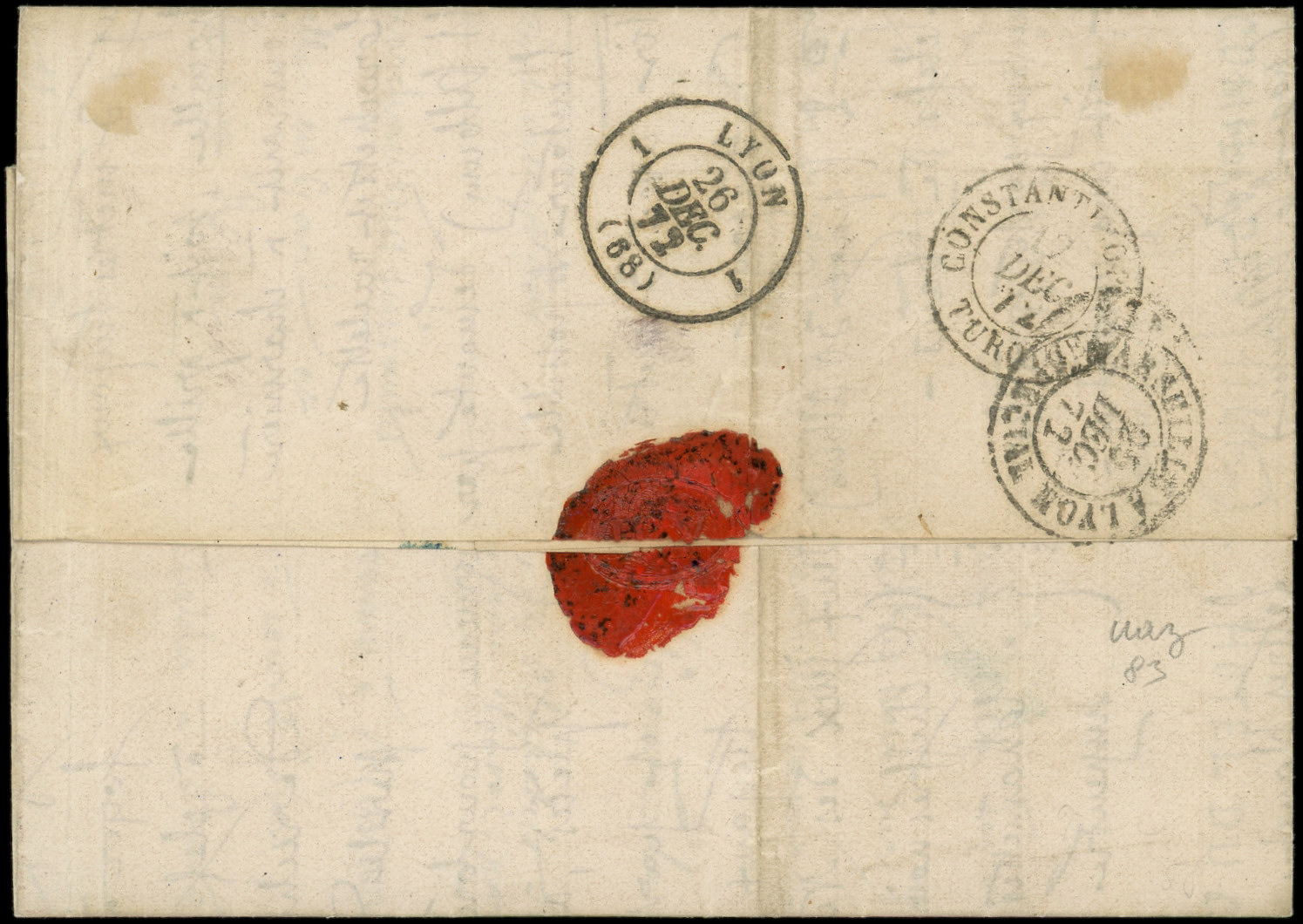 GC 5100 s. LAC, càd TREBIZONDE 14/12/72, le tout en noir, passage CONSTANTINOPLE 17/12 et arr. Lyon 26/12, TB (Image) (Image2)